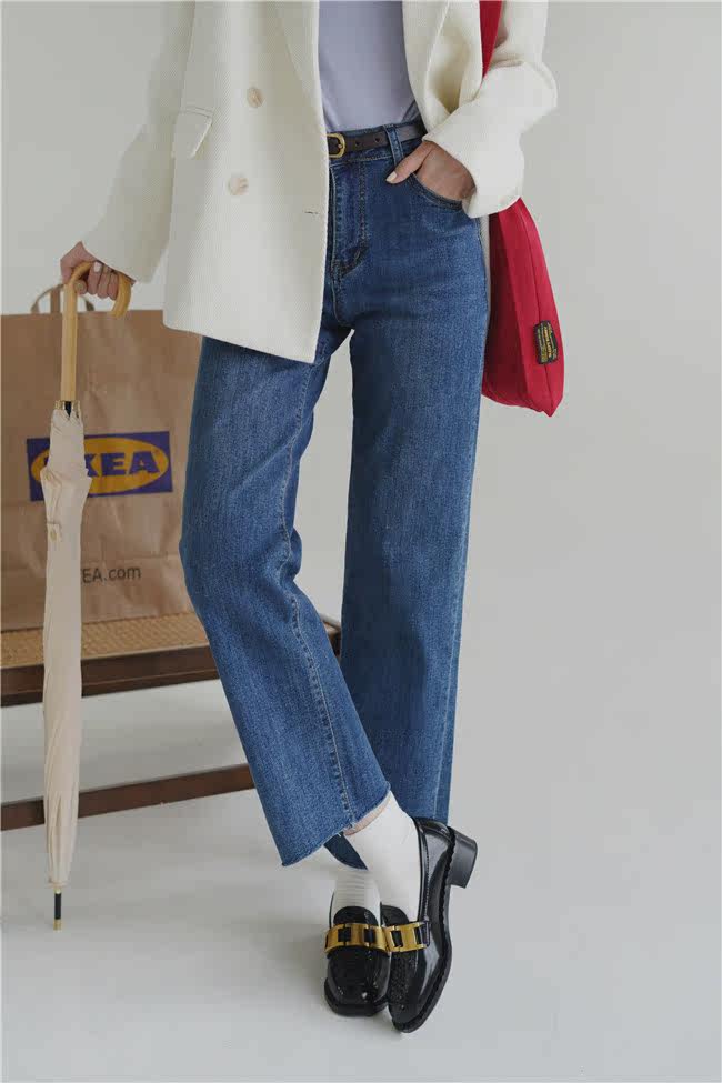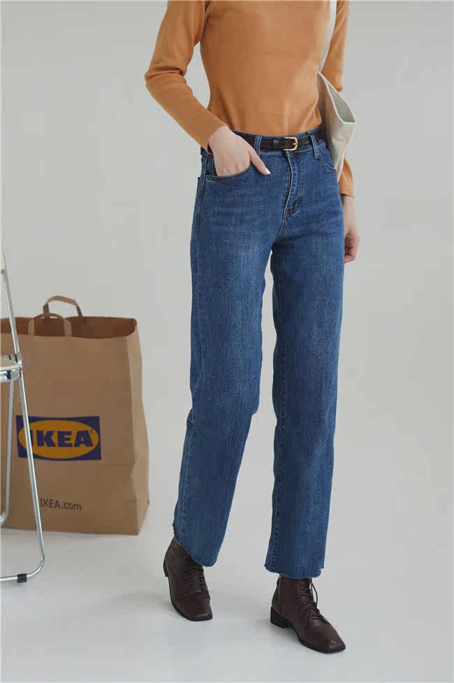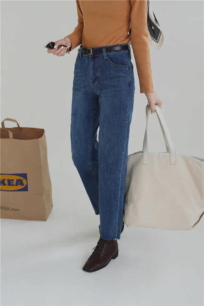 Бархатные прямые свободные джинсы, приталенные синие штаны, 2020, высокая талия