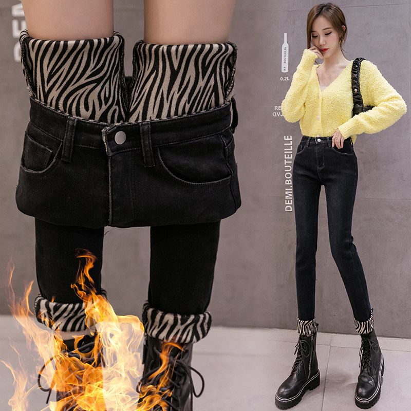 Флисовые джинсы с начесом, демисезонные эластичные удерживающие тепло штаны, коллекция 2021, высокая талия, в обтяжку, увеличенная толщина