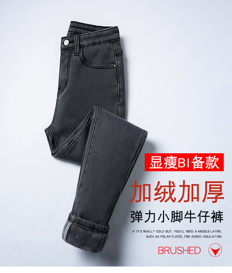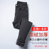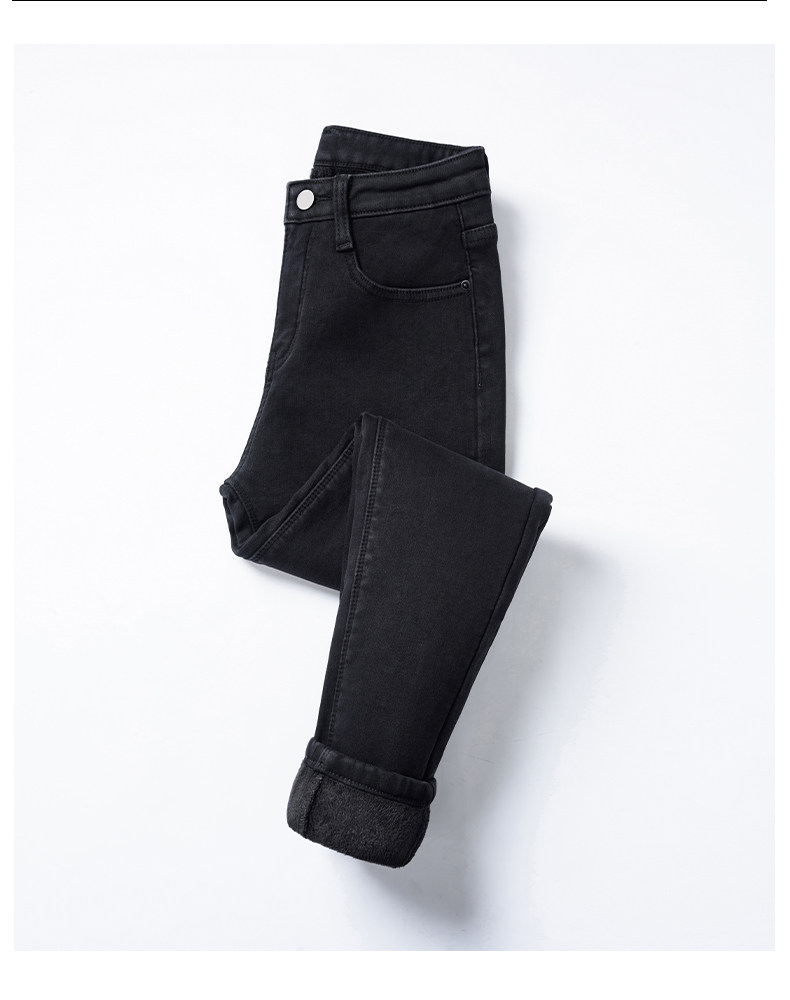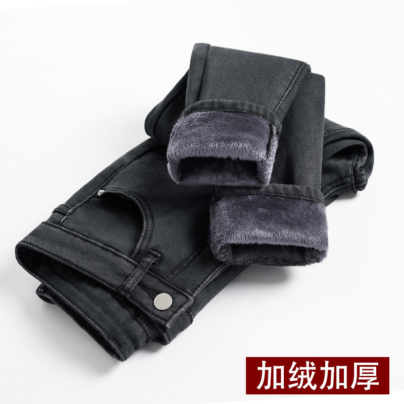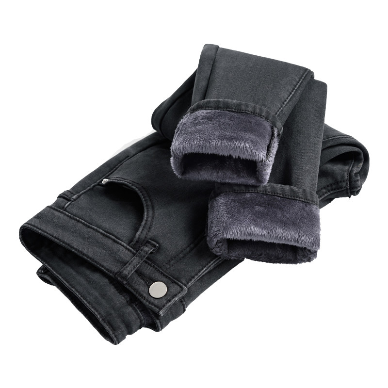 Флисовые джинсы с начесом, демисезонные приталенные штаны, увеличенная толщина, высокая талия, в обтяжку