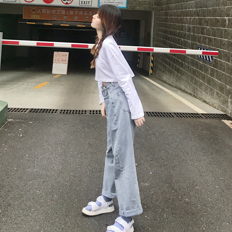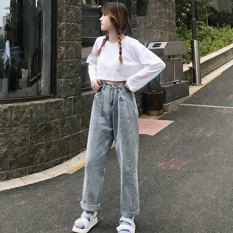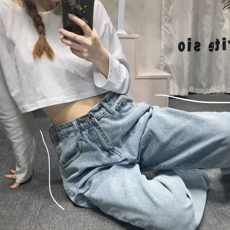 Замок, джинсы, универсальные штаны, высокая талия, 2021 года, свободный прямой крой