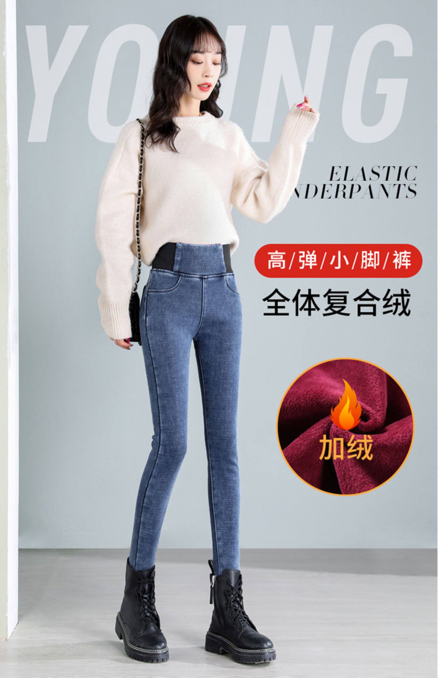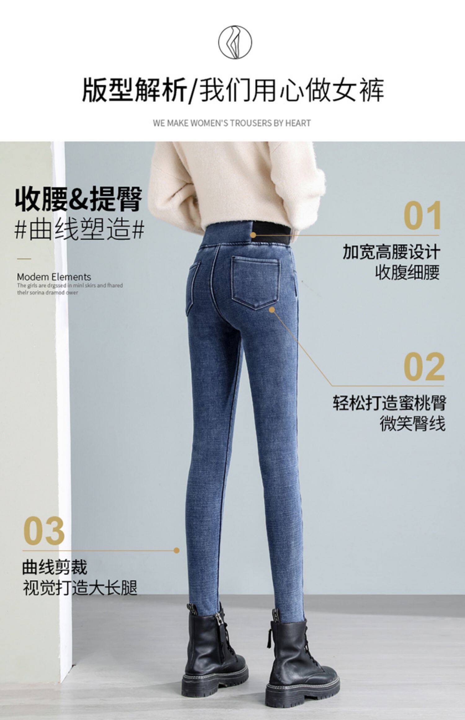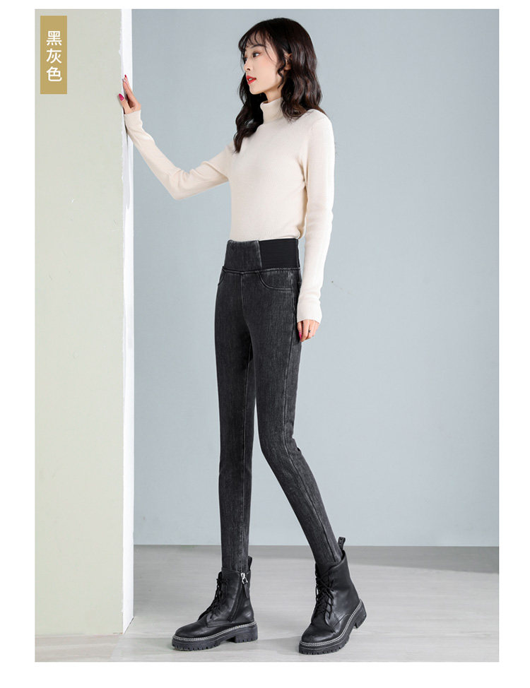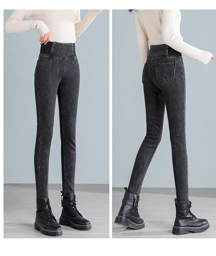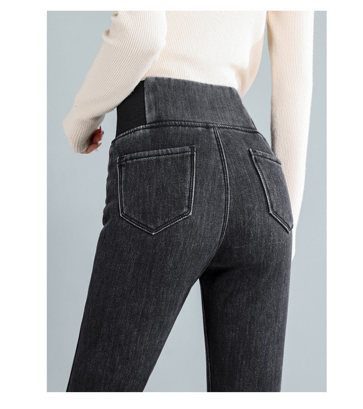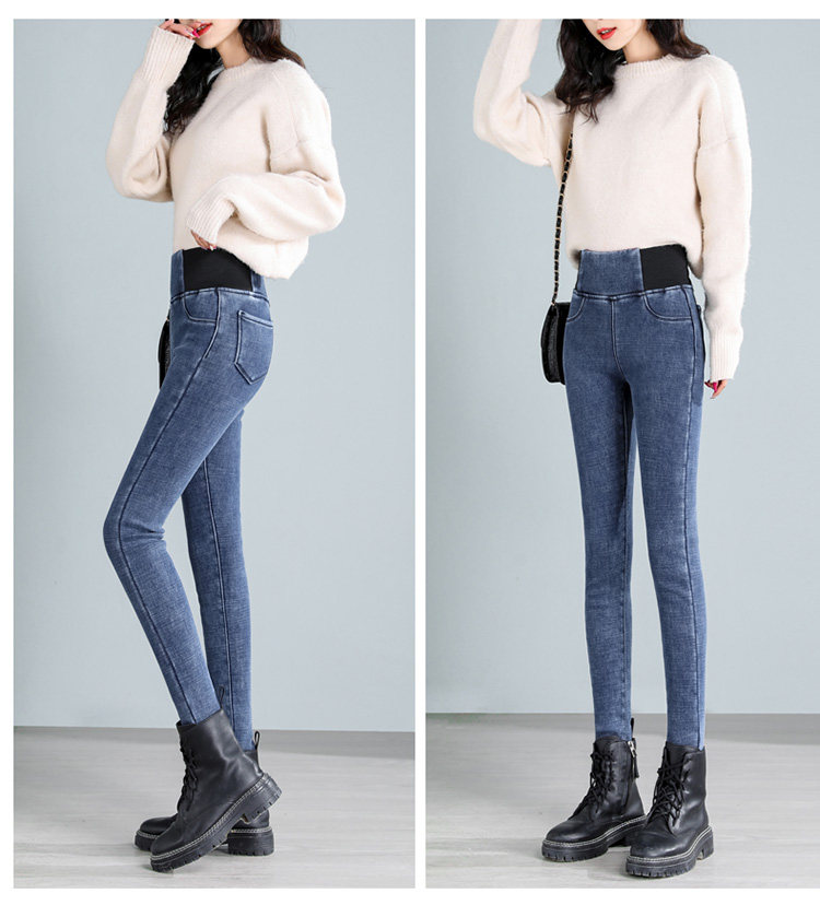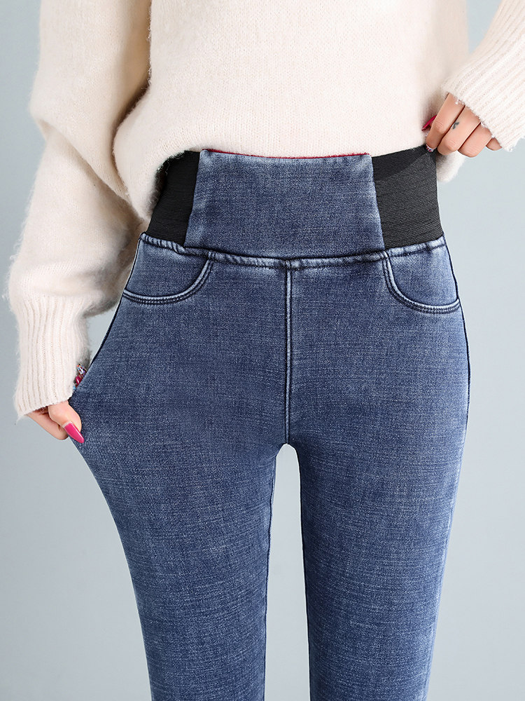 Демисезонные джинсы с начесом, штаны, леггинсы, удерживающий тепло карандаш, эластичная талия, коллекция 2022, высокая талия