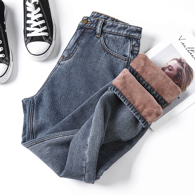 Утепленные джинсы с начесом, прямые свободные джинсы, зимние приталенные штаны, 2020, высокая талия