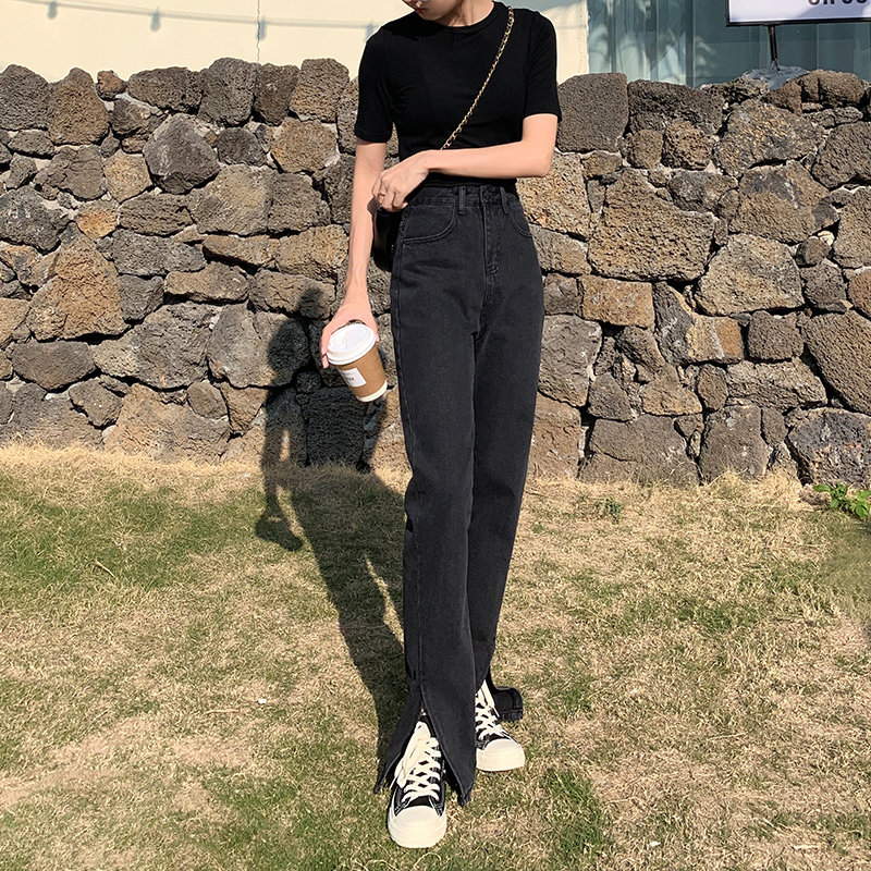 Черные джинсовые демисезонные джинсы, штаны, приталенные зимние леггинсы, подходит для подростков, свободный прямой крой, высокая талия, по фигуре