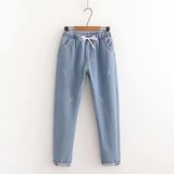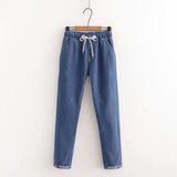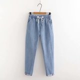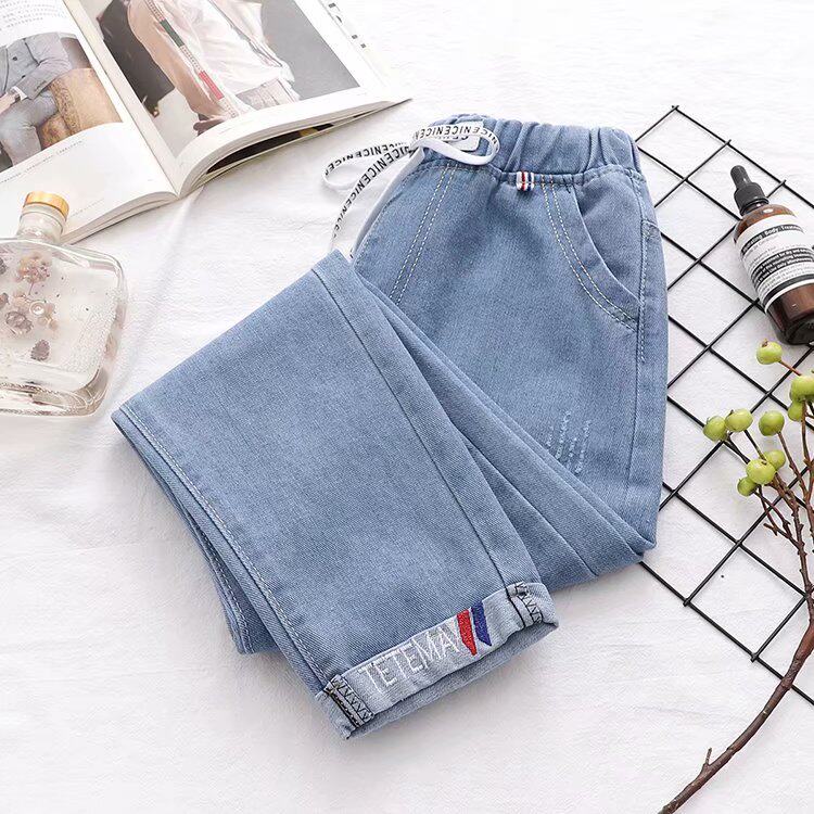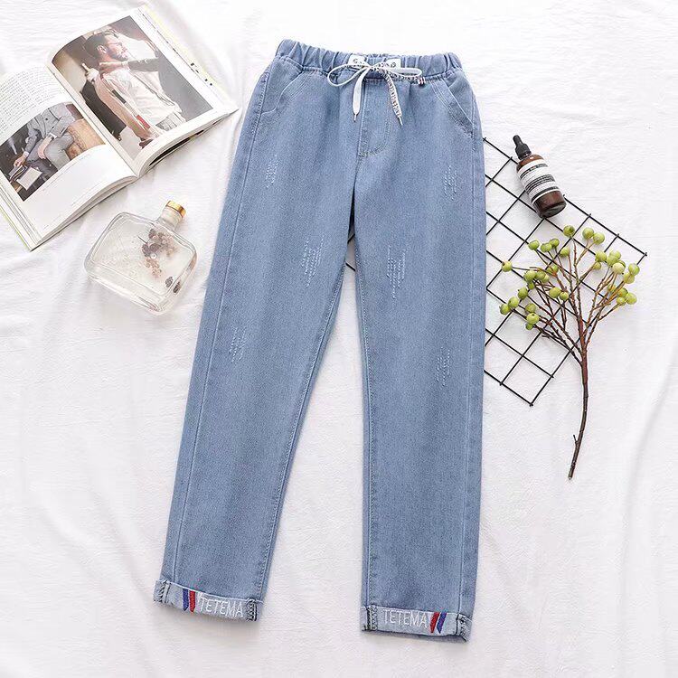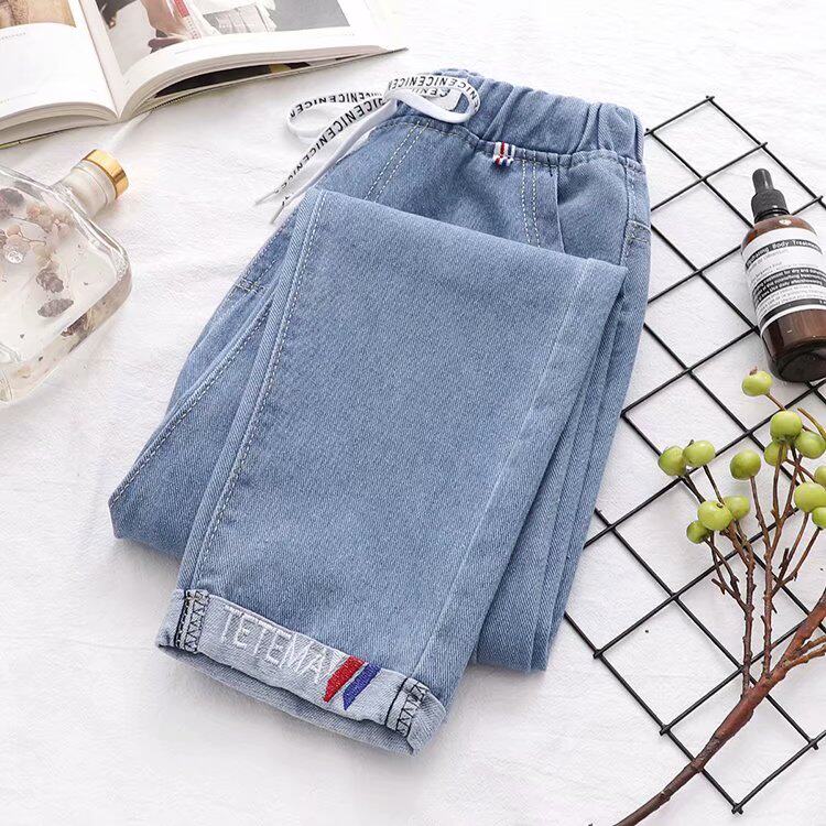 Осенние штаны, прямые свободные джинсы для школьников и студентов, коллекция 2021, для средней школы, эластичная талия, оверсайз