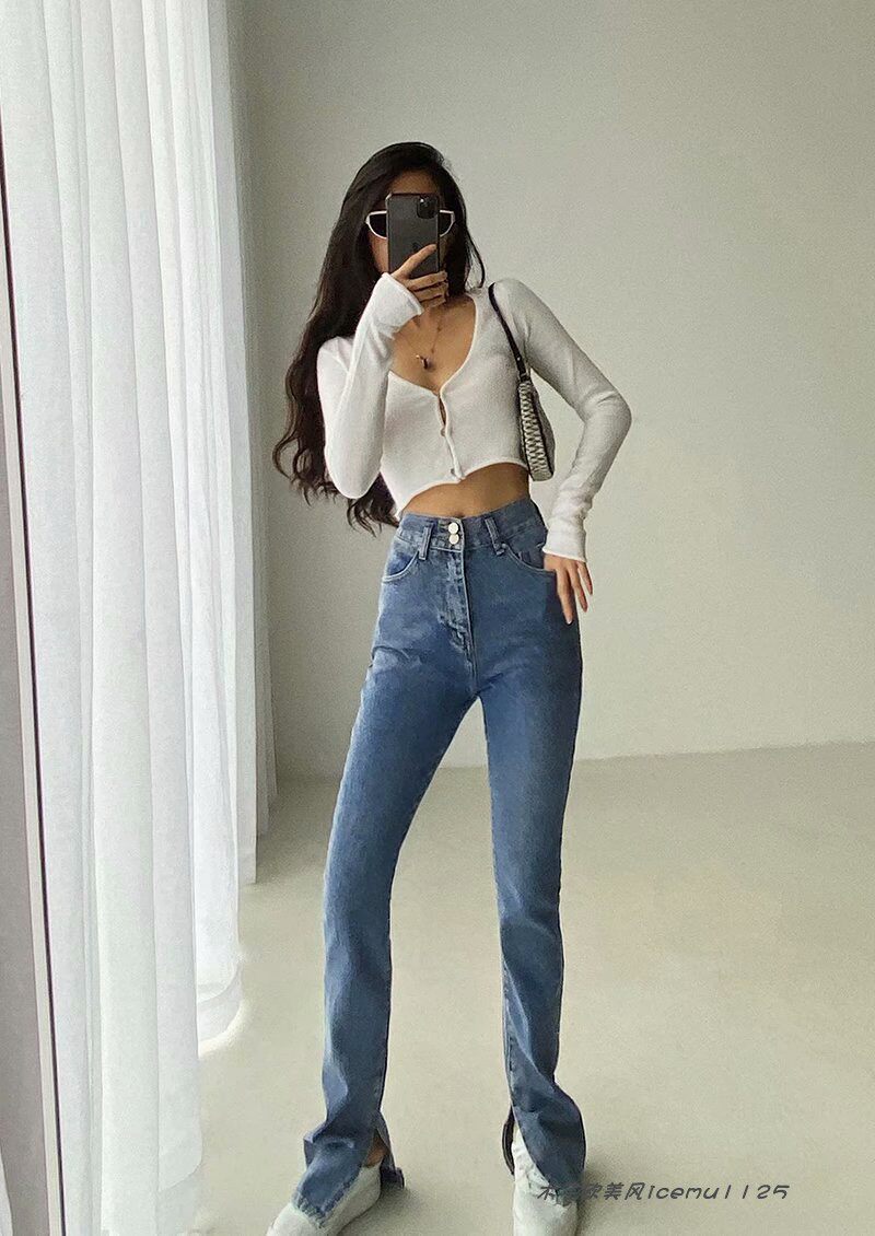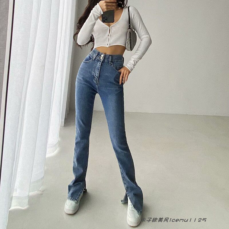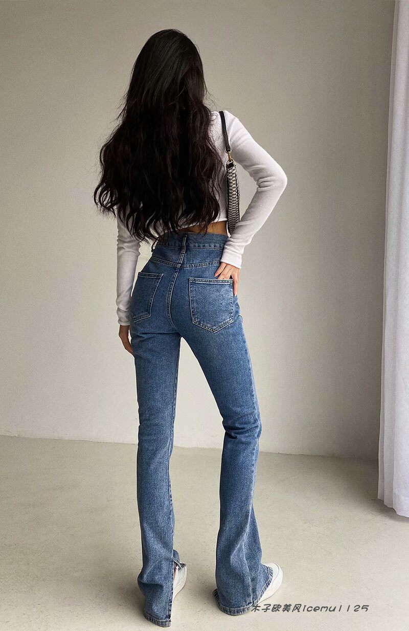 Tide, демисезонные штаны-клёш, тонкие джинсовые штаны, европейский стиль, облегающий крой, в обтяжку