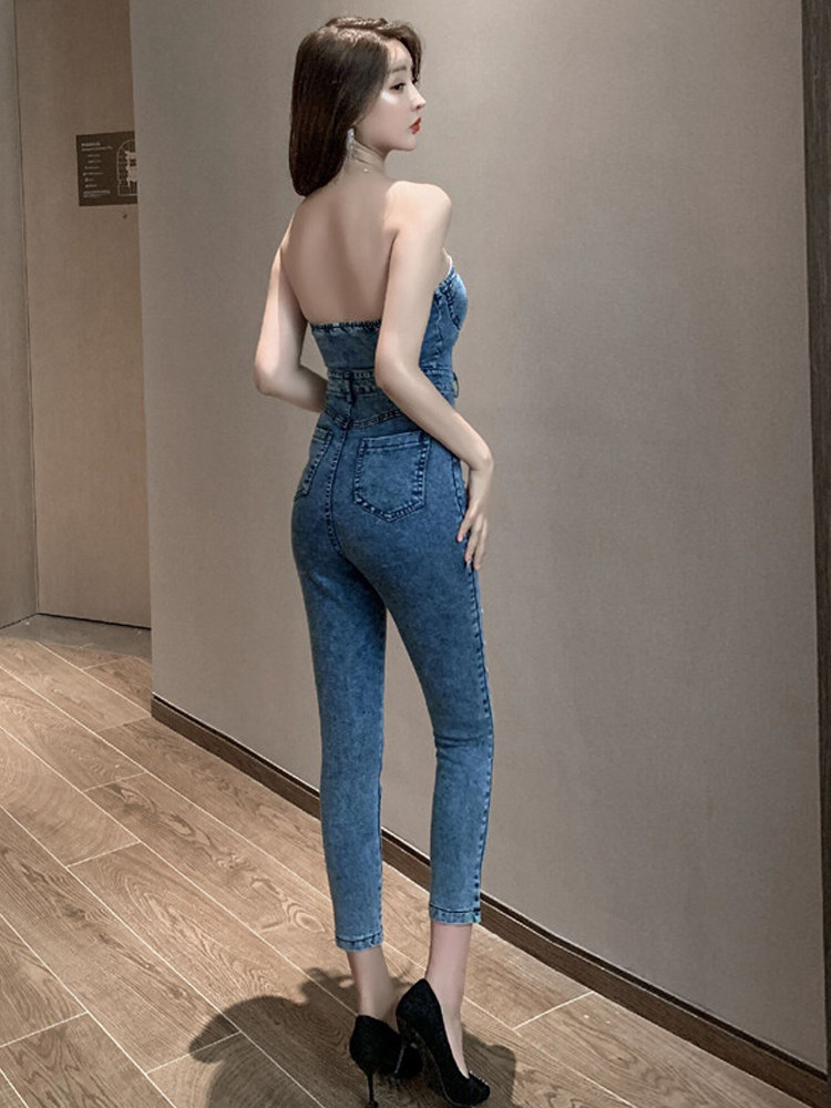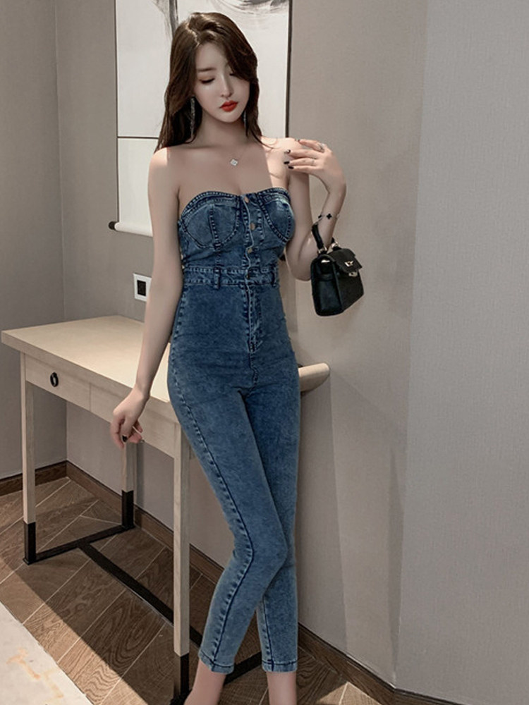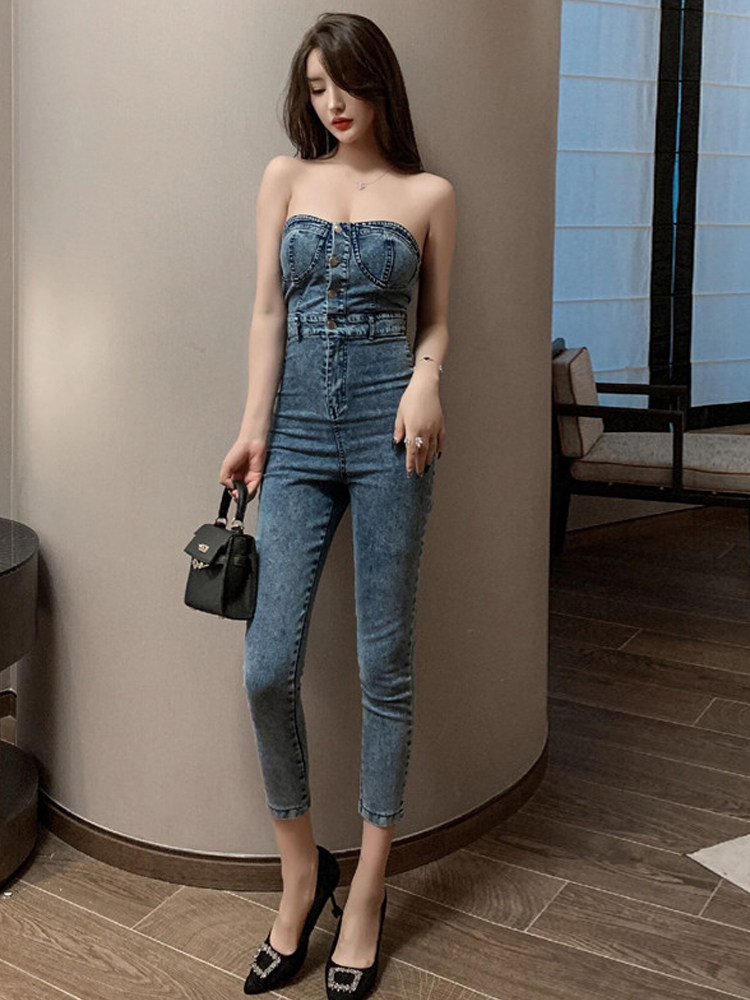 Сексуальный топ без лямок, весенний комбинезон, весенние штаны, джинсы, подходит для подростков, высокая талия, в обтяжку, по фигуре