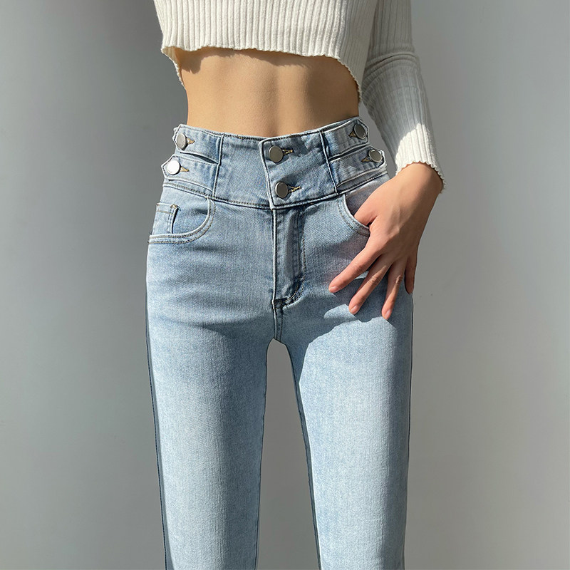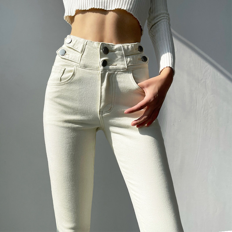 Светлые цветные джинсы, приталенные штаны, эластичный карандаш, коллекция 2021, высокая талия, в обтяжку