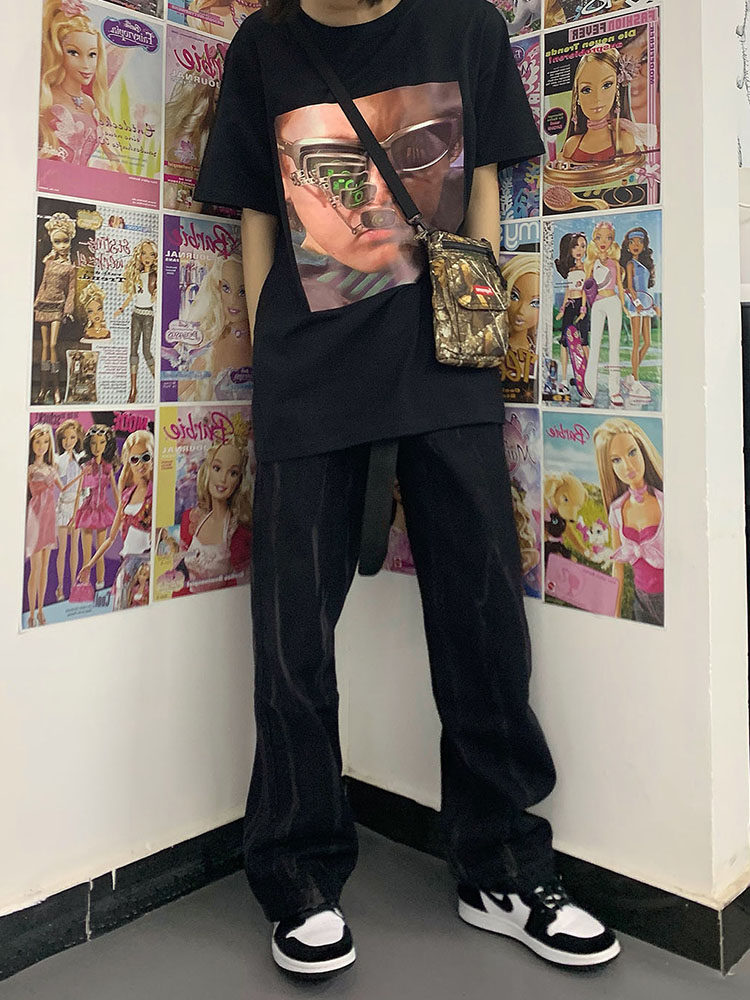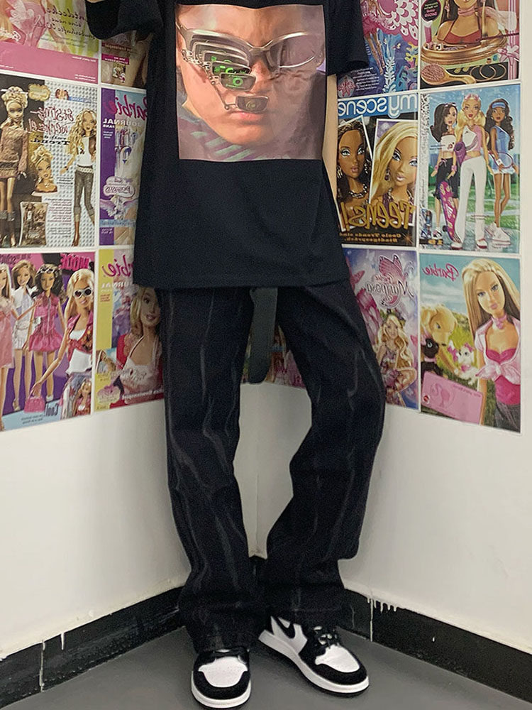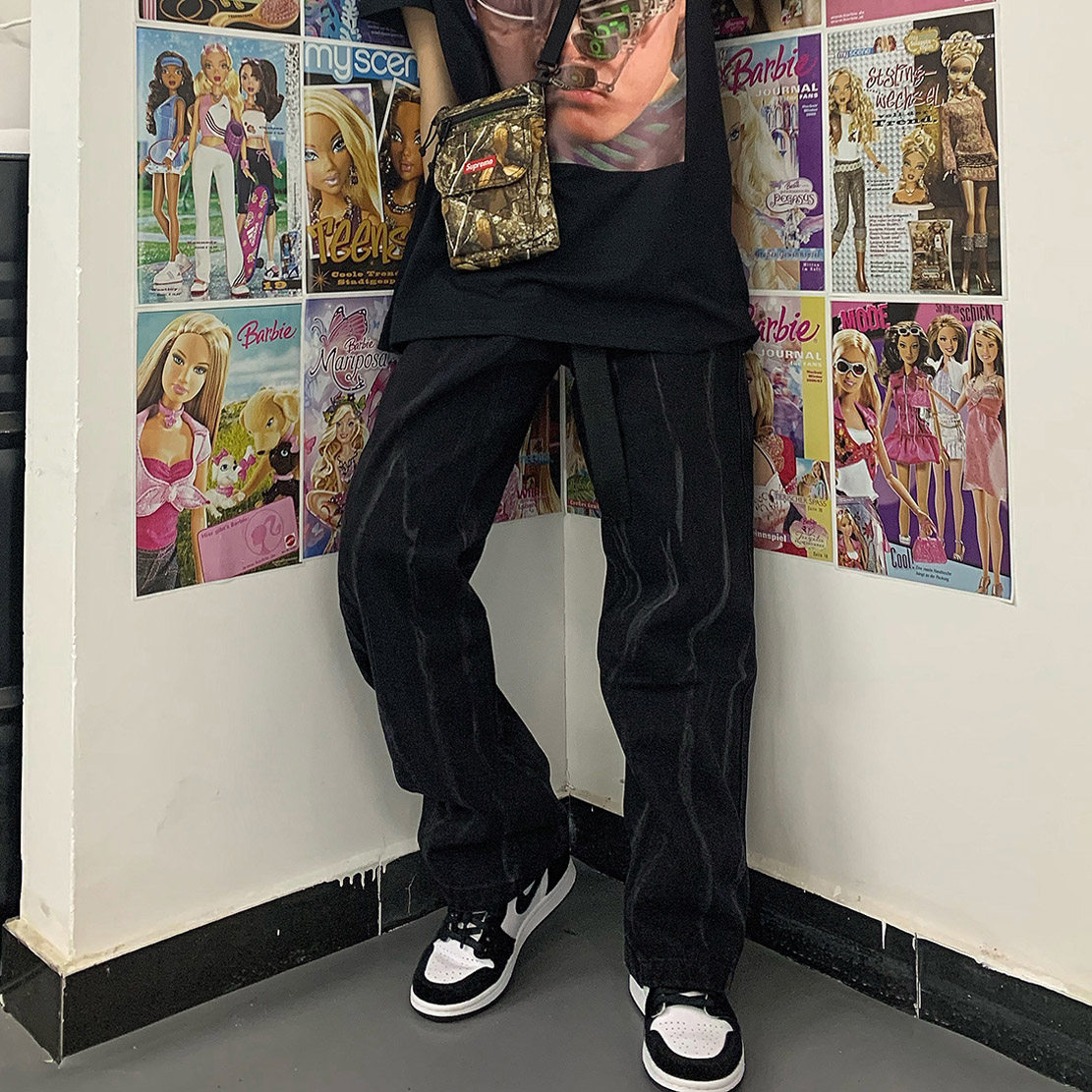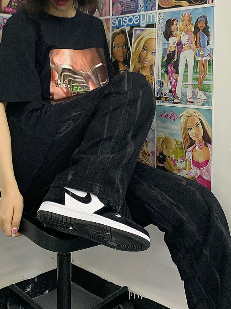 Осенние брендовые черные штаны, джинсы, коллекция 2022, в корейском стиле, свободный прямой крой, высокая талия