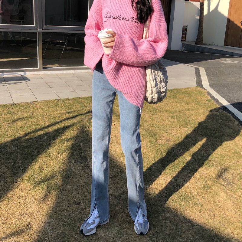 Ретро джинсовые демисезонные джинсы, штаны, леггинсы, приталенные штаны-клёш