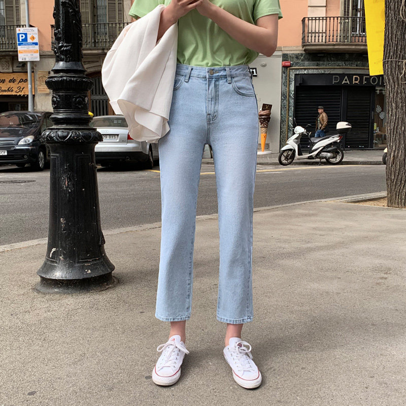 Светлые джинсы, осенние приталенные штаны, свободный прямой крой, коллекция 2021, высокая талия, подходит для подростков