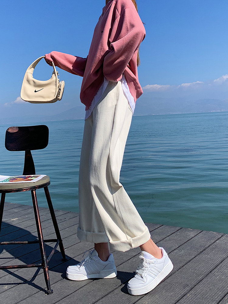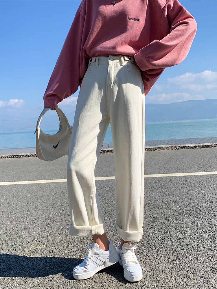 Белые цветные весенние прямые свободные джинсы, штаны для школьников, высокая талия, коллекция 2022, оверсайз, свободный крой