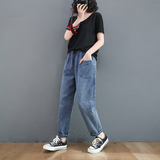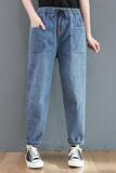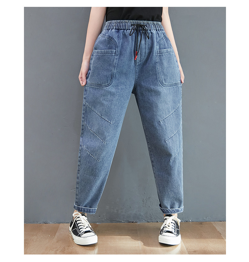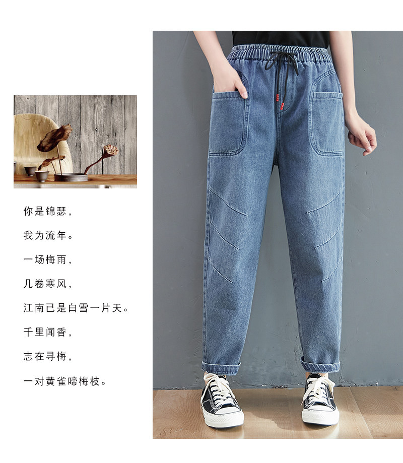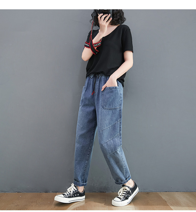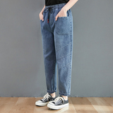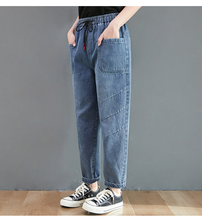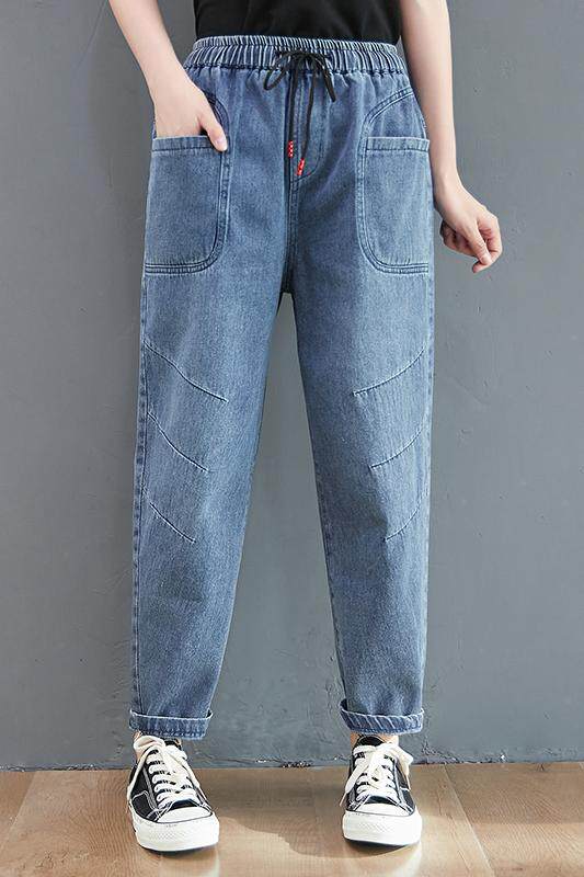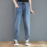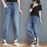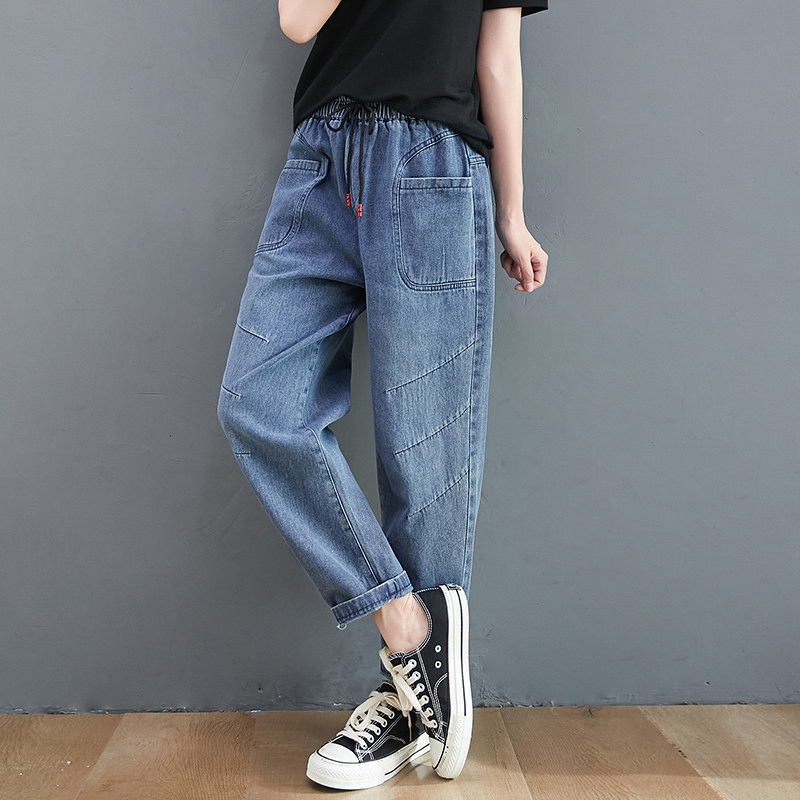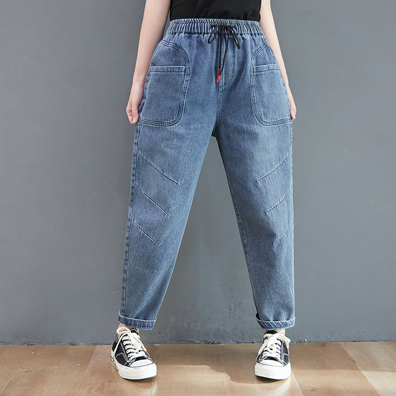 Весенние джинсы, штаны, высокая талия, в корейском стиле, коллекция 2023, оверсайз, по фигуре, эластичная талия, большой размер