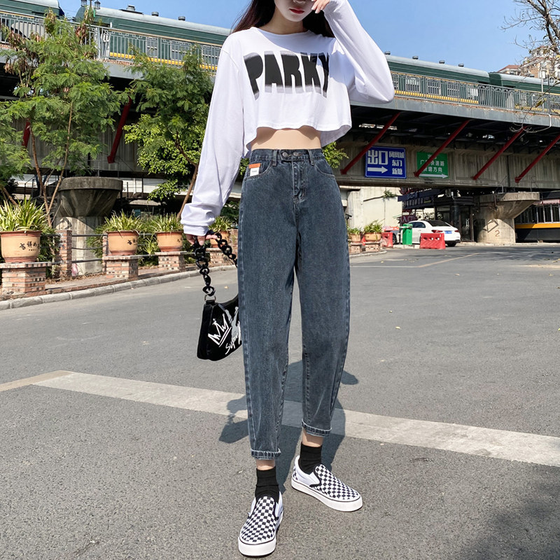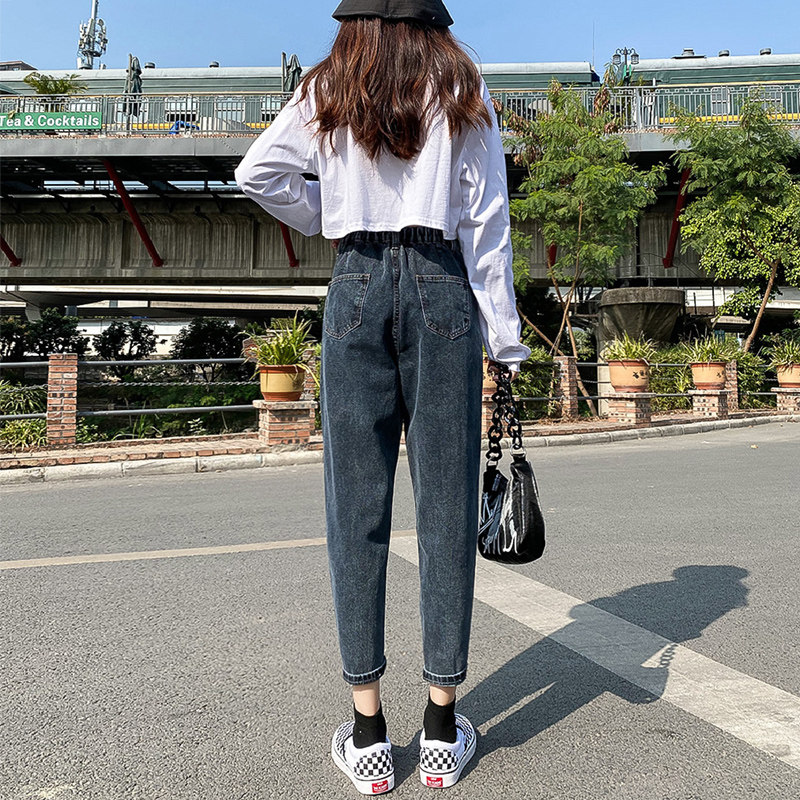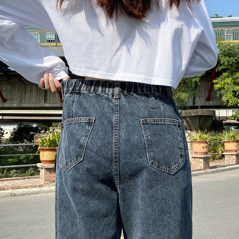 Штаны, летние приталенные джинсы, эластичная талия, высокая талия, свободный крой