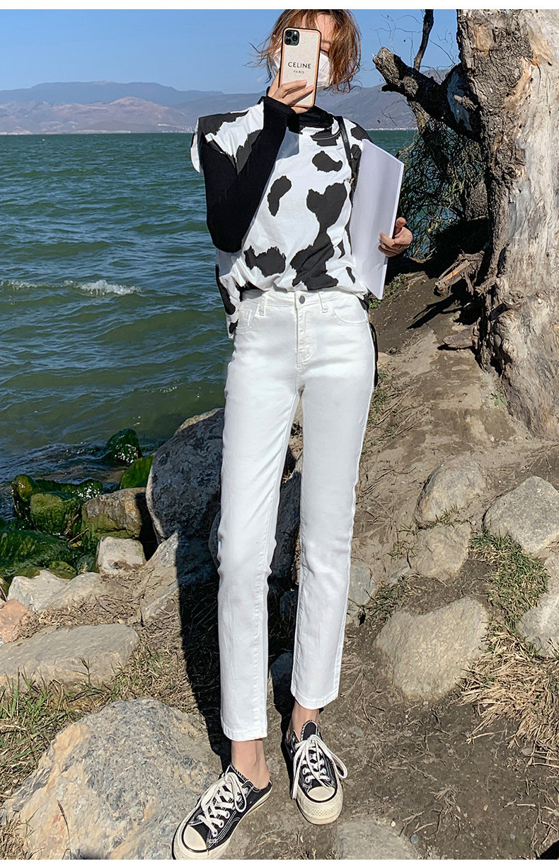 Белые тонкие джинсы, штаны, высокая талия, коллекция 2022, свободный прямой крой