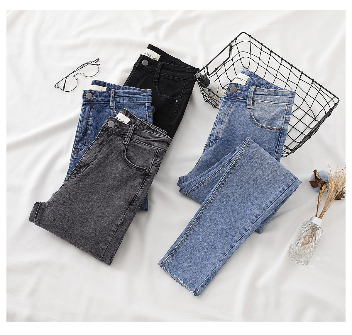 Осенние светлые джинсы, штаны, ростомер, карандаш, в обтяжку, облегающий крой, высокая талия, по фигуре