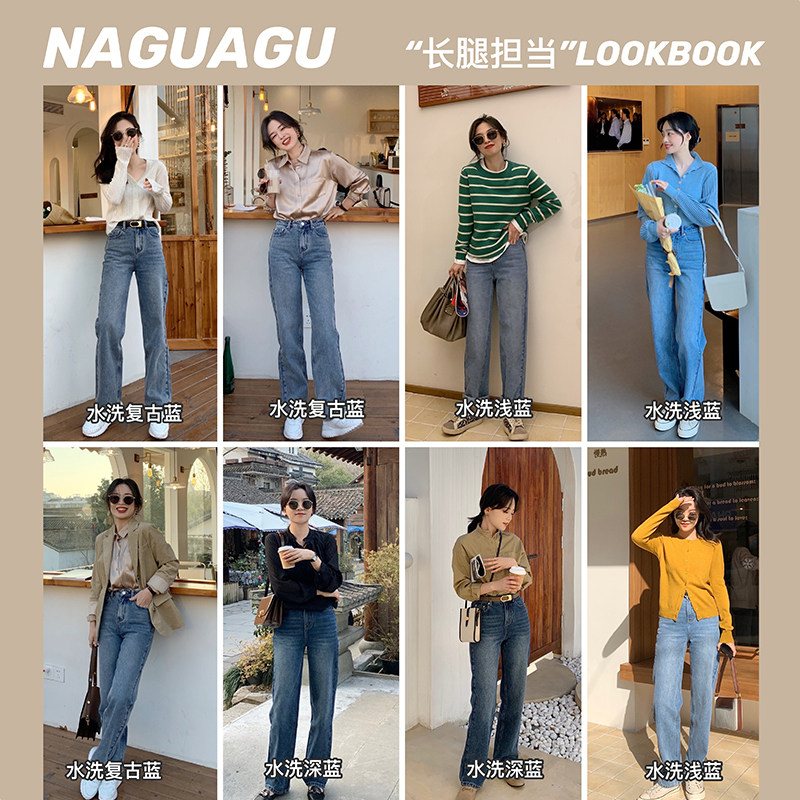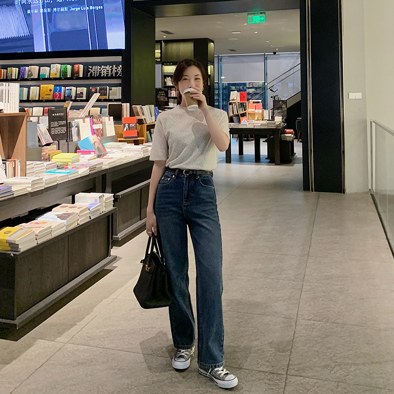 Синие джинсы, штаны, свободный прямой крой, высокая талия