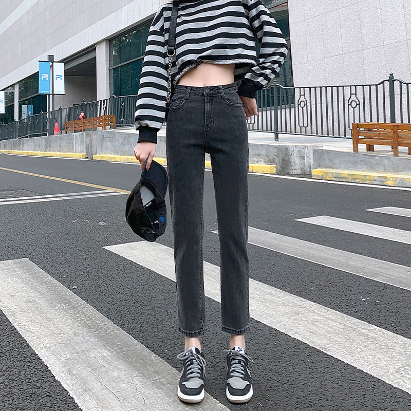 Весенние осенние джинсы, штаны, высокая талия, свободный прямой крой