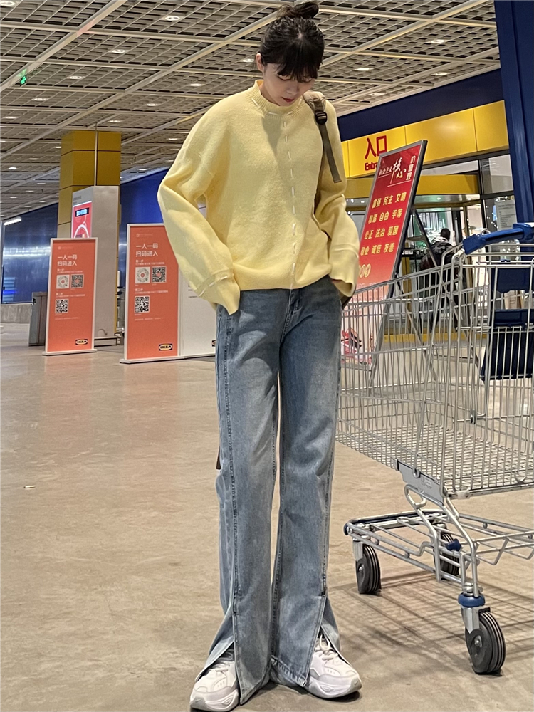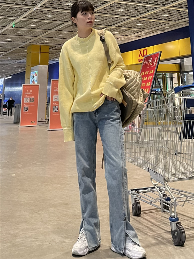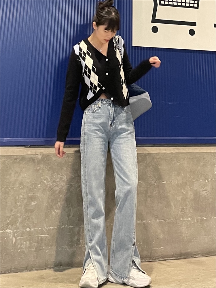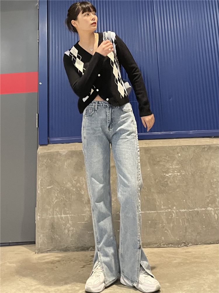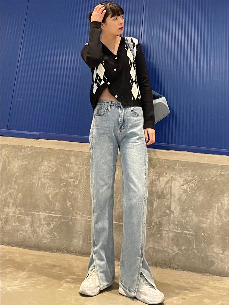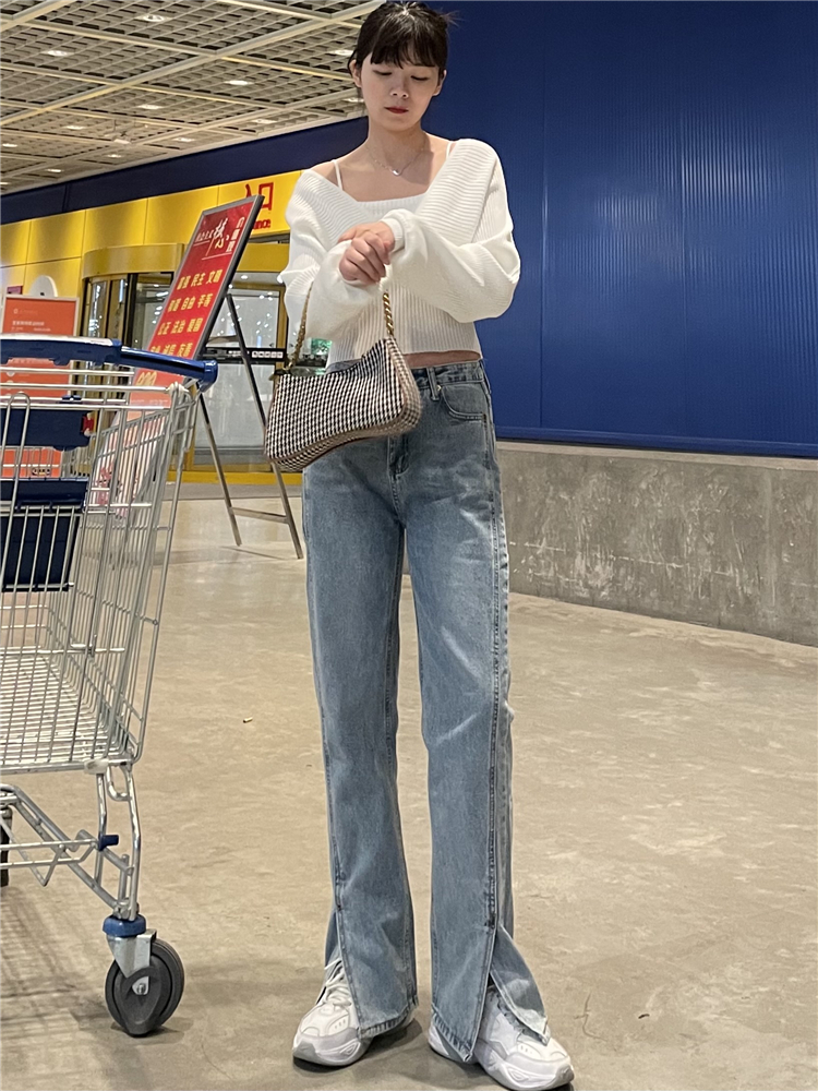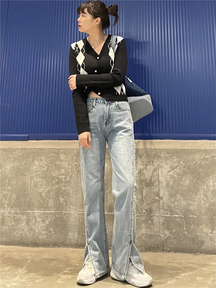 Нет никаких изменений в разделенном дизайне высокопоставленных прямых штанов!