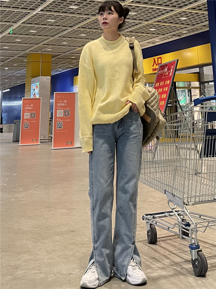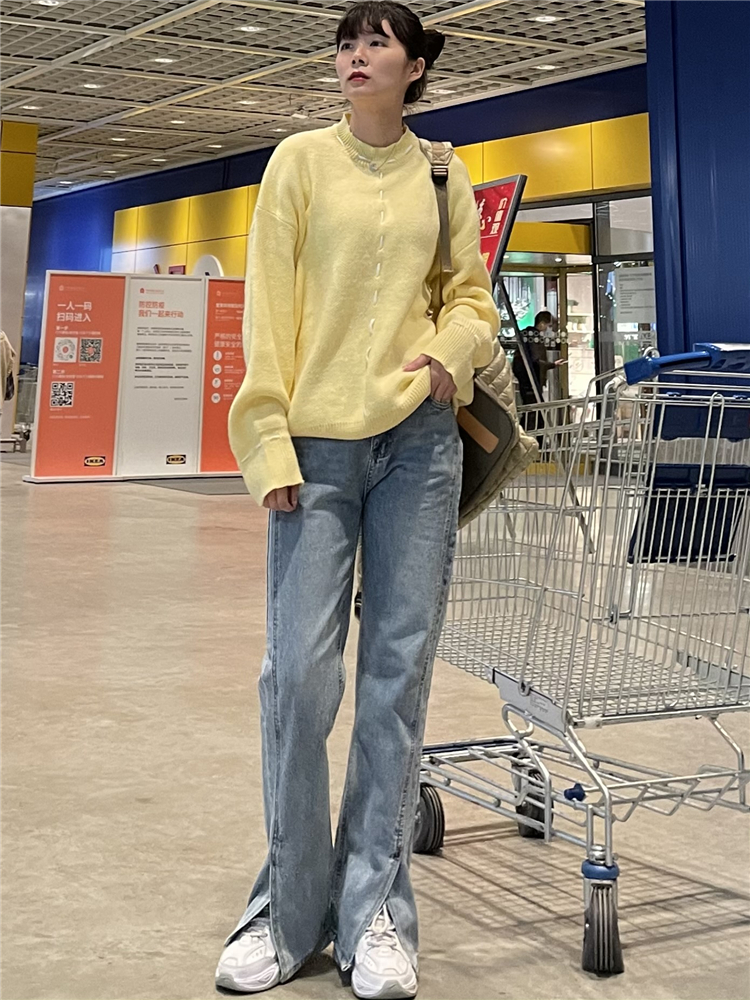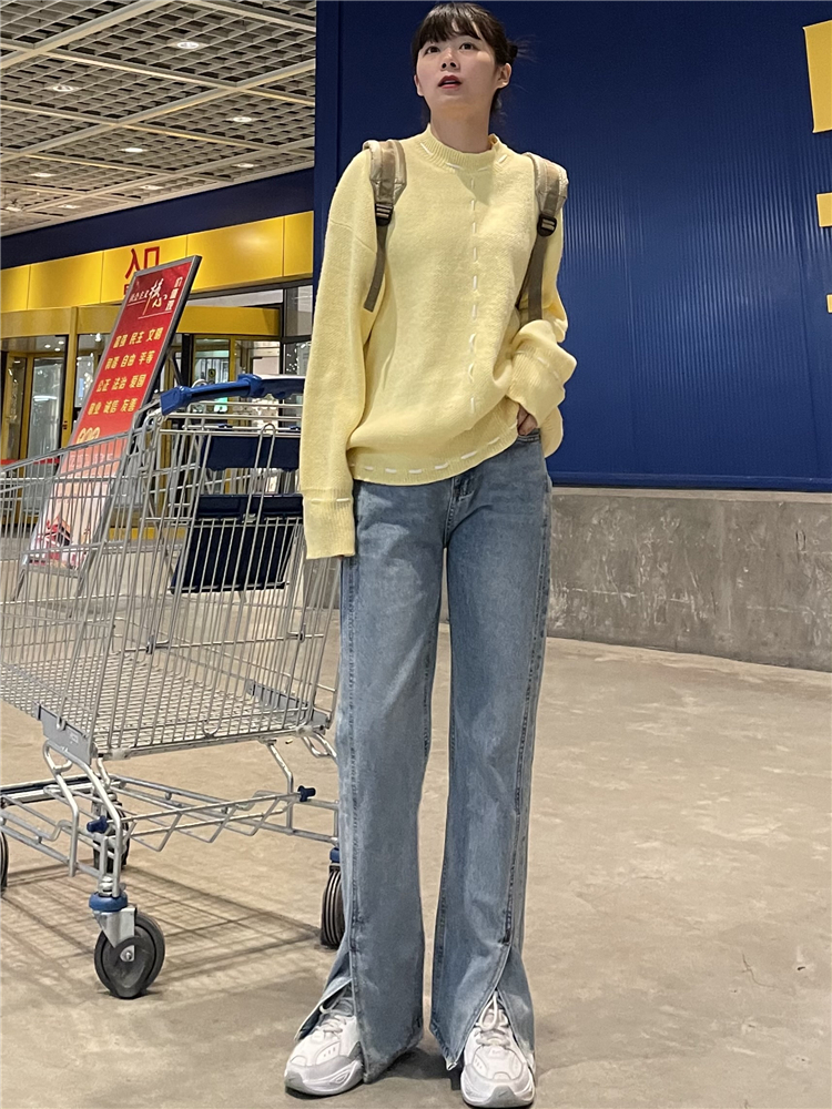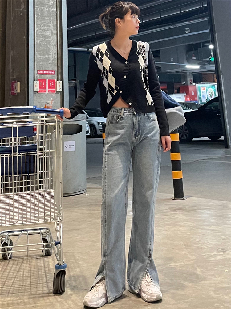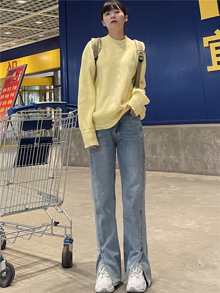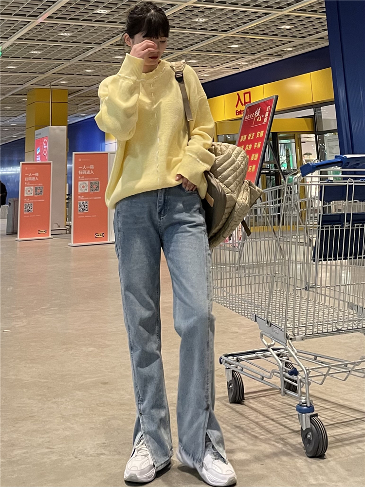 Нет никаких изменений в разделенном дизайне высокопоставленных прямых штанов!