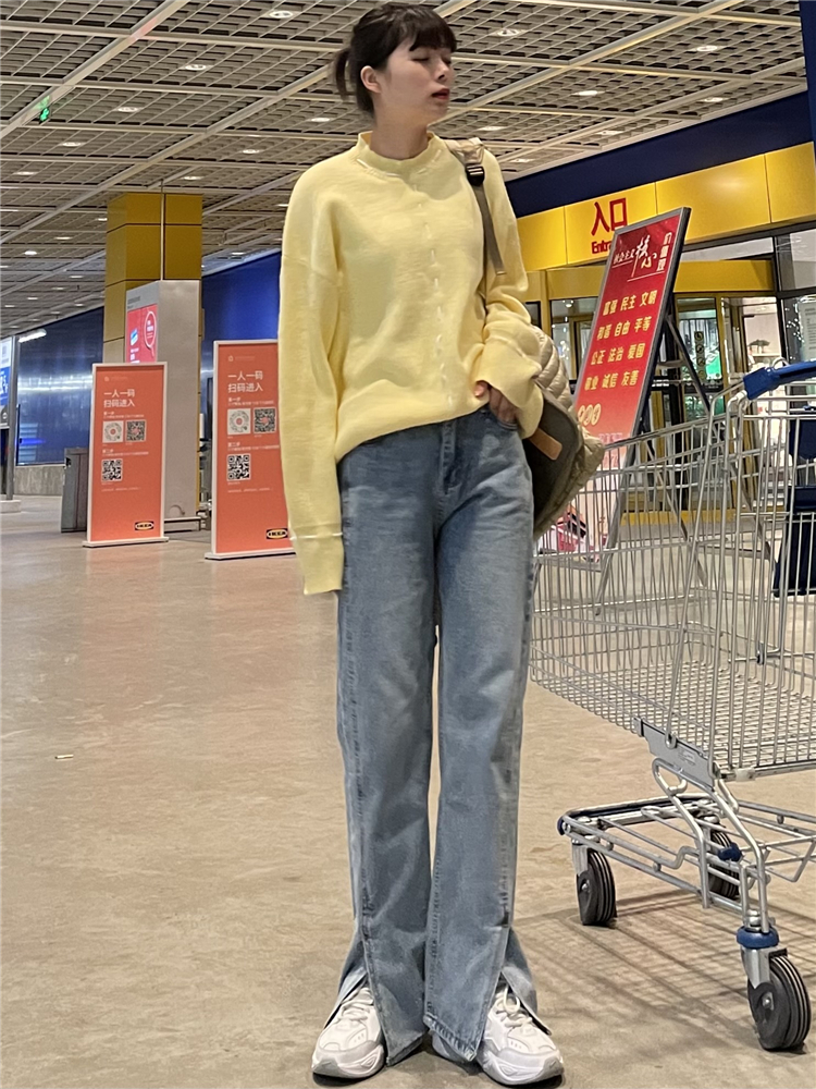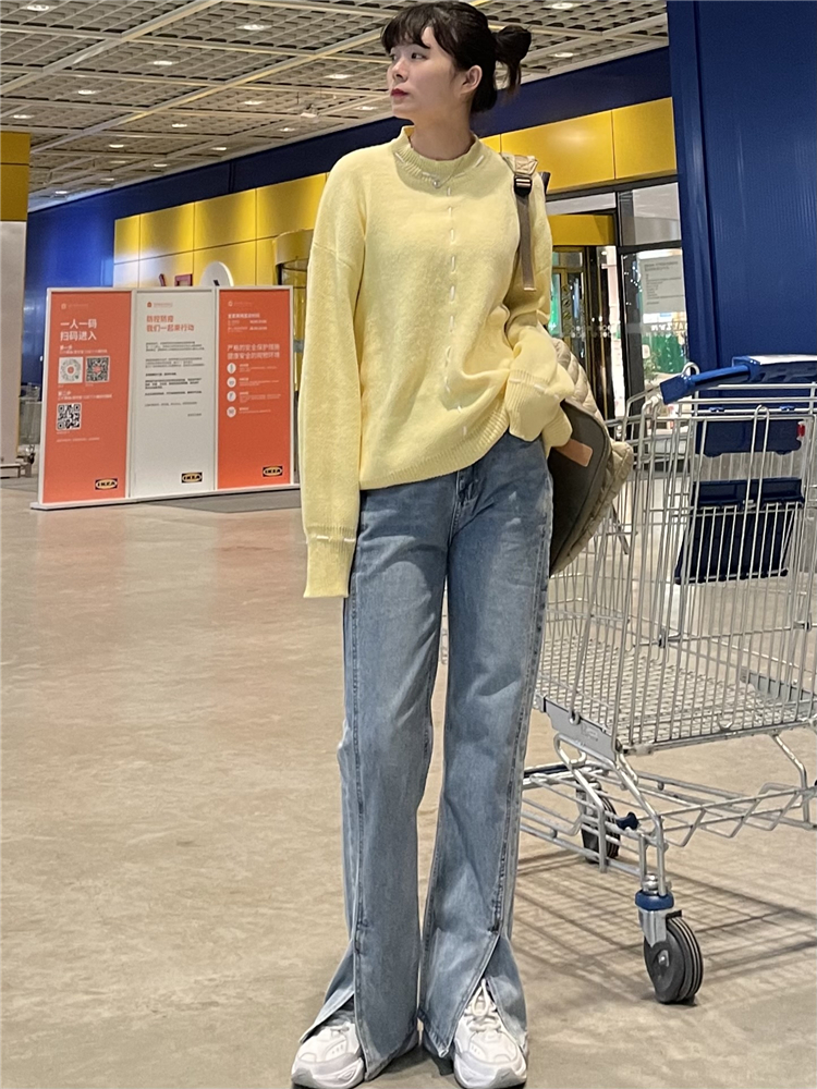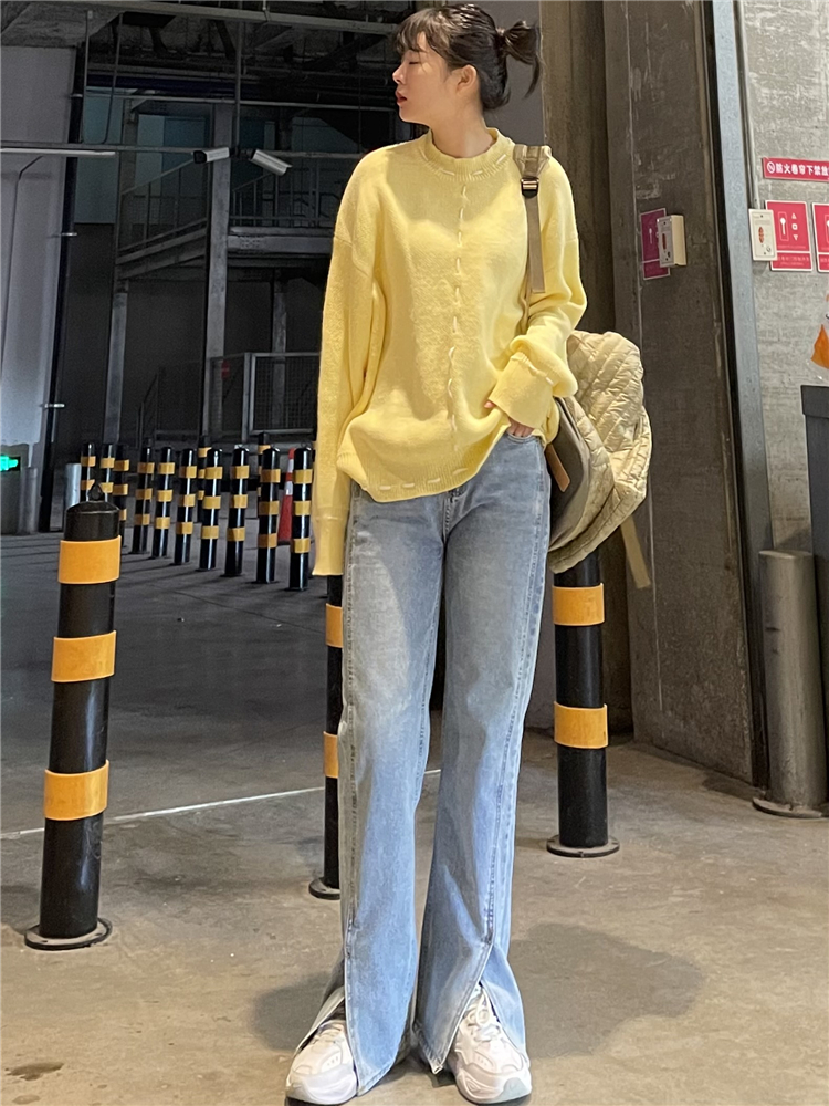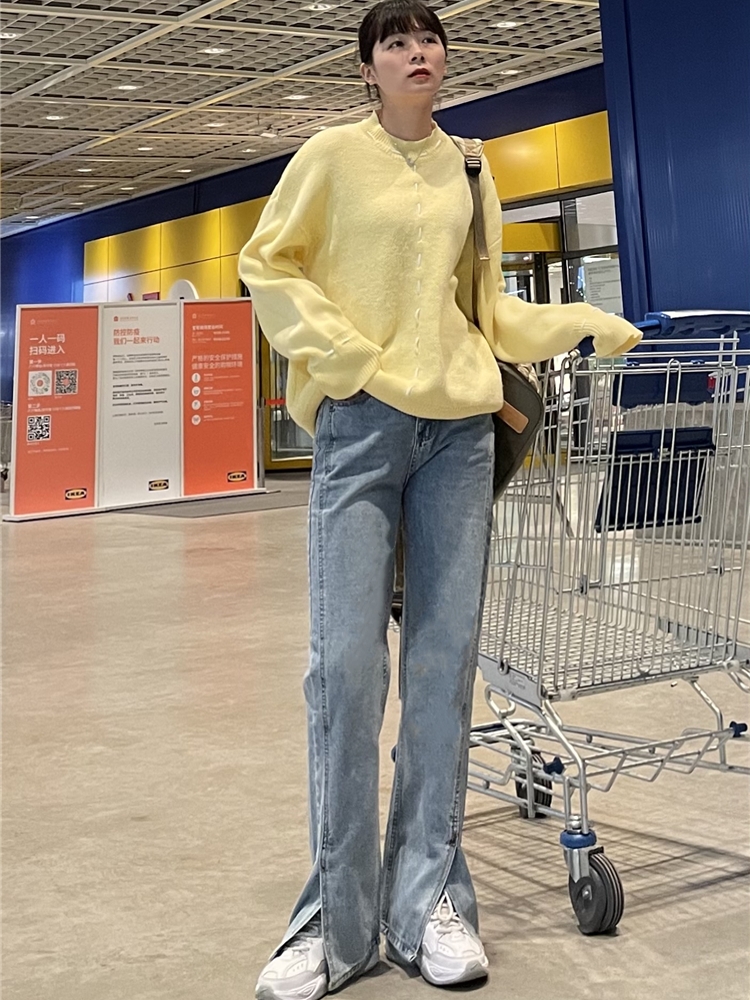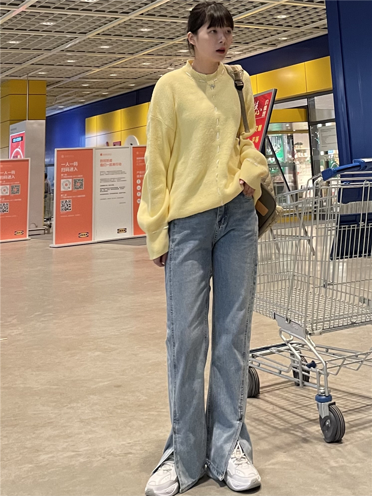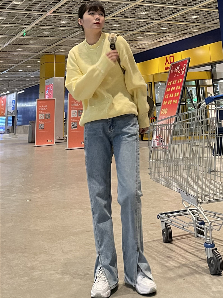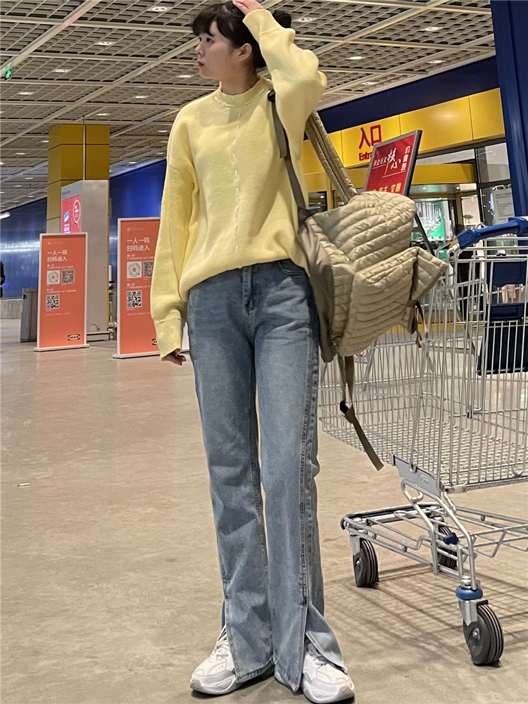 Нет никаких изменений в разделенном дизайне высокопоставленных прямых штанов!
