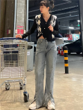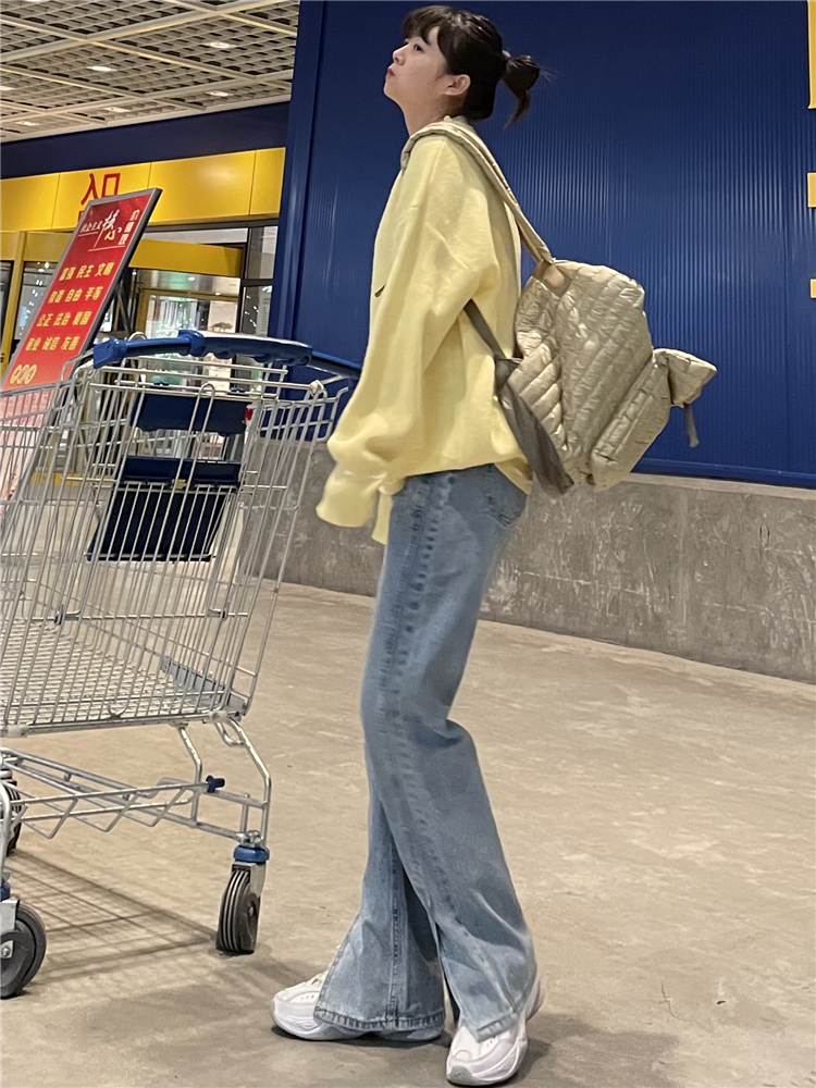 Весенние эластичные синие джинсовые джинсы, штаны, высокая талия, свободный прямой крой