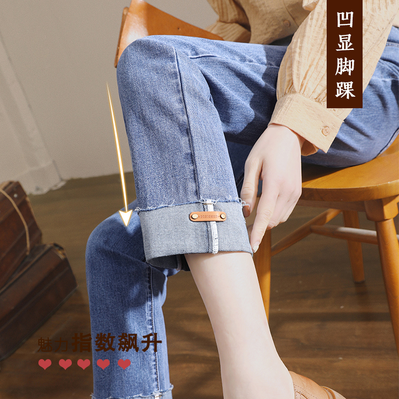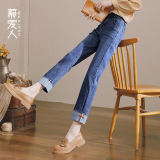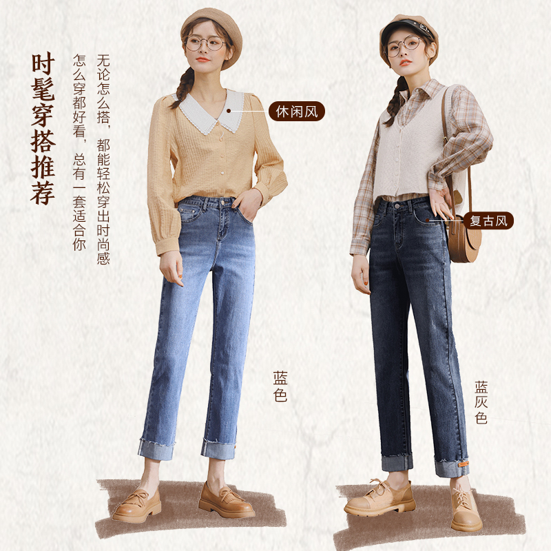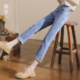 Тонкие джинсы, синие штаны, высокая талия, свободный прямой крой, по фигуре