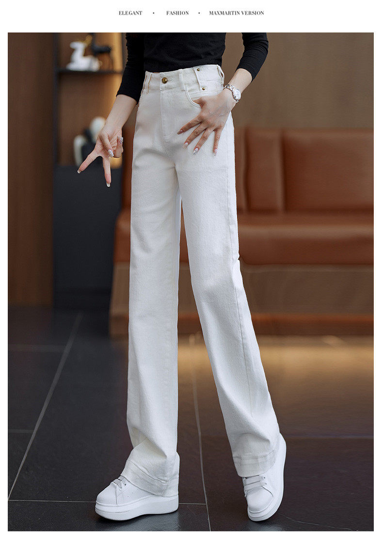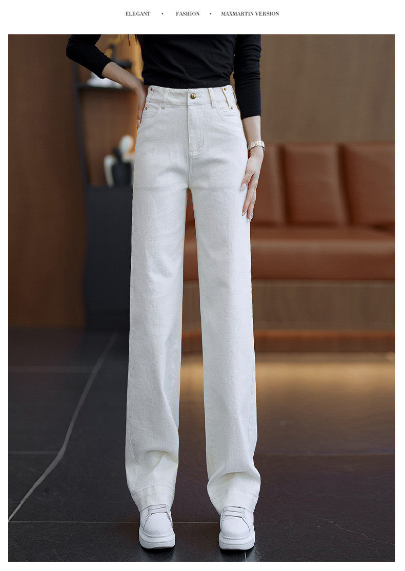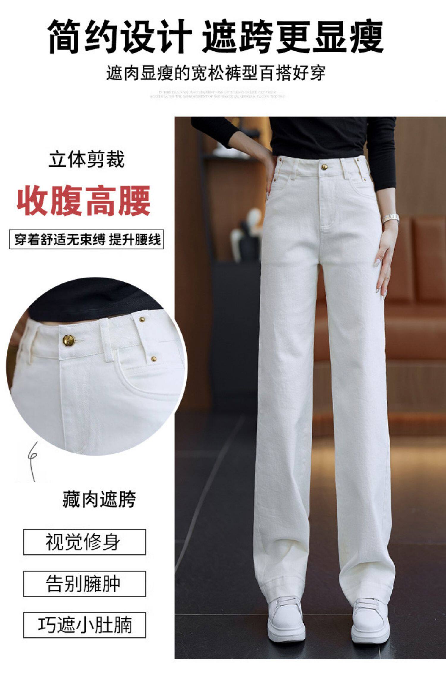 Белые джинсы, весенние осенние штаны, 2025 года, высокая талия, подходят для подростков, свободный прямой крой