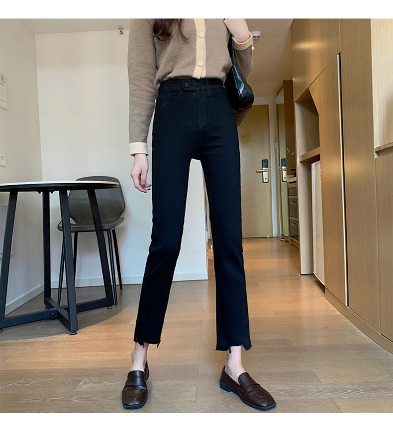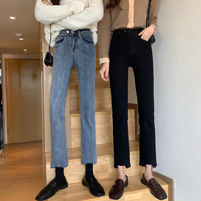 Джинсы, черные штаны, высокая талия, коллекция 2022, свободный прямой крой, подходит для подростков