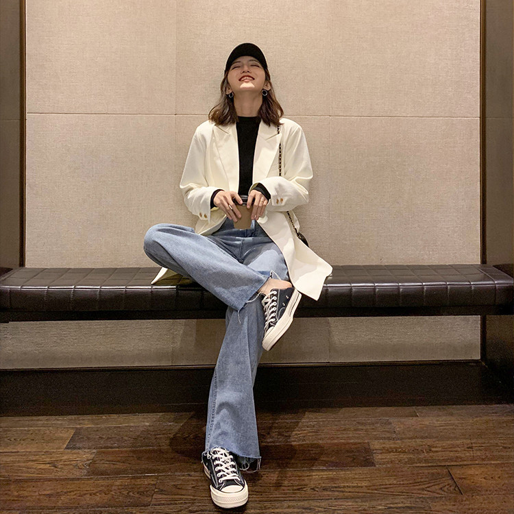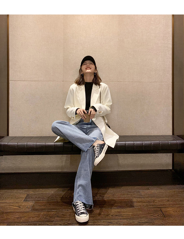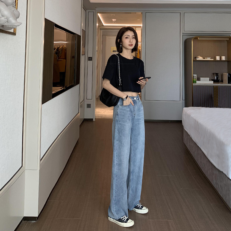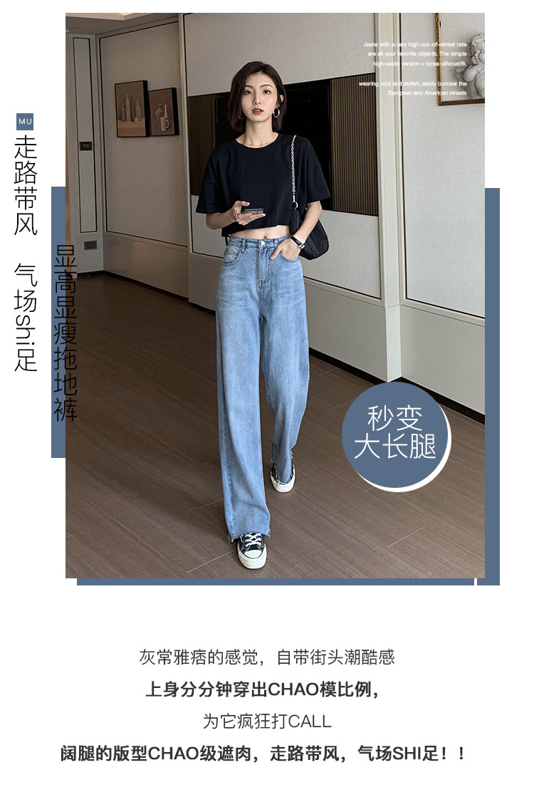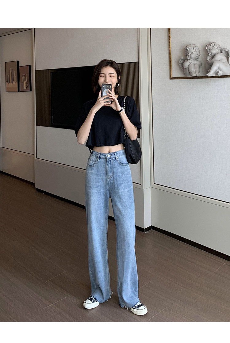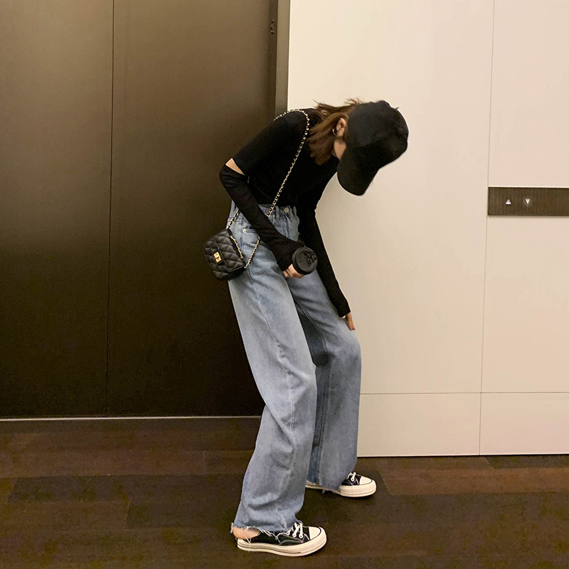Осенние джинсы, штаны, высокая талия, коллекция 2023, по фигуре, свободный прямой крой