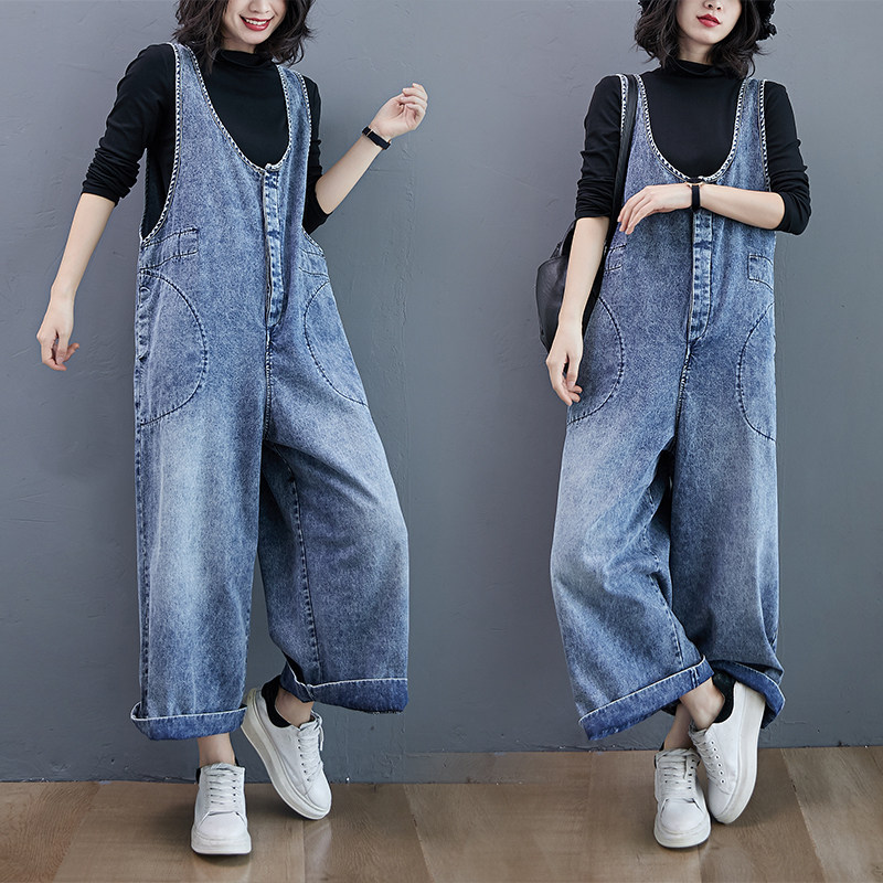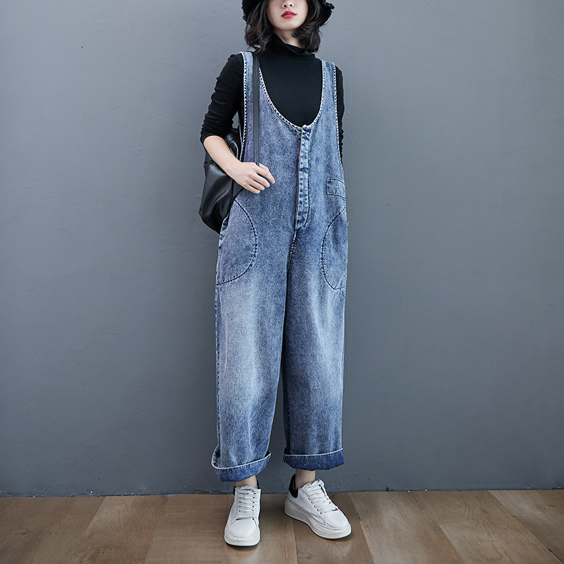 Весенний джинсовый комбинезон без рукавов, штаны для отдыха, оверсайз, по фигуре, свободный прямой крой
