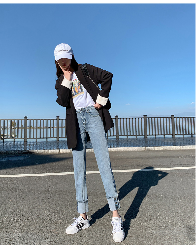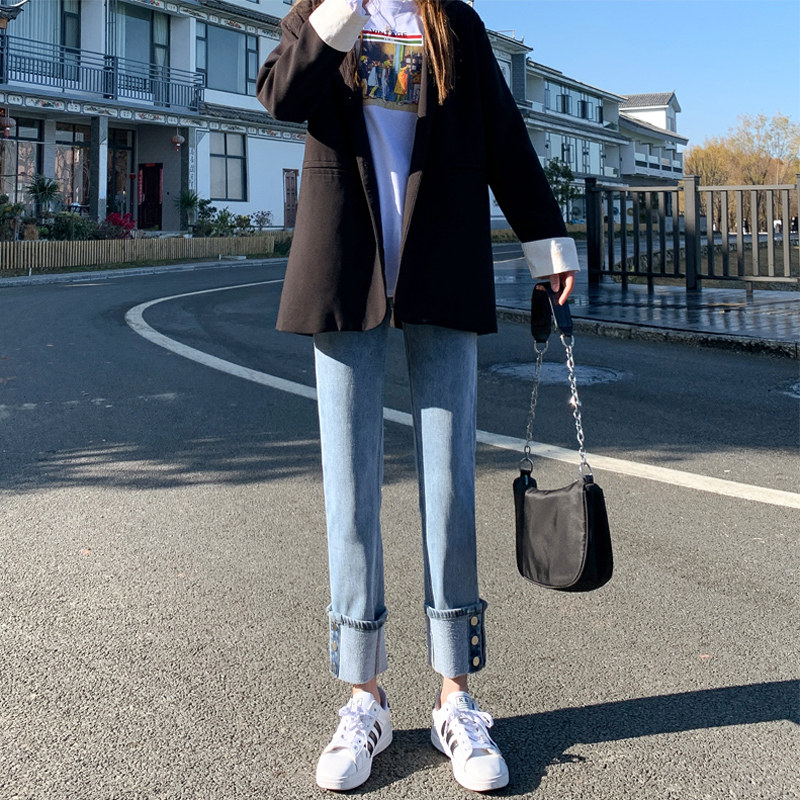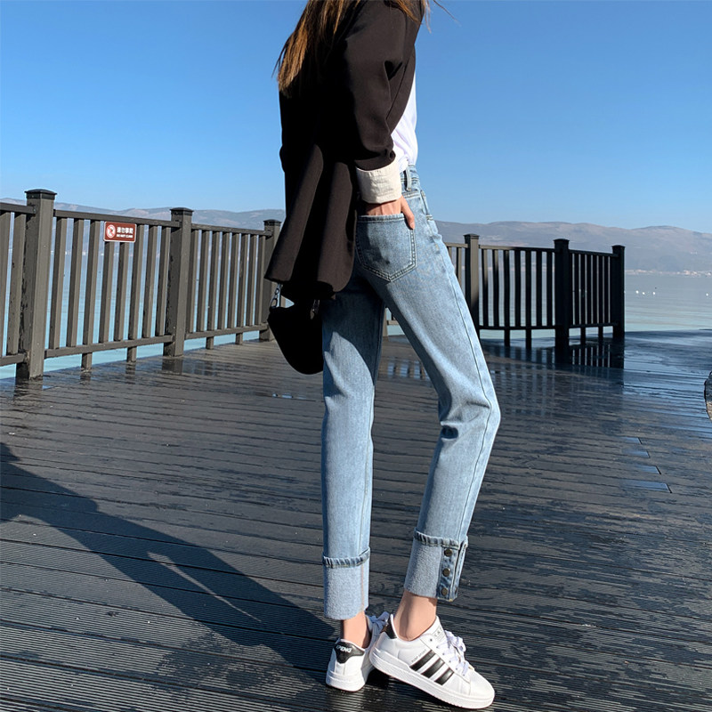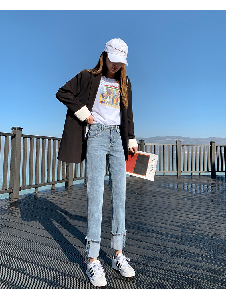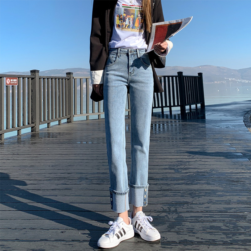 Тонкие прямые свободные джинсы, штаны, высокая талия, свободный крой