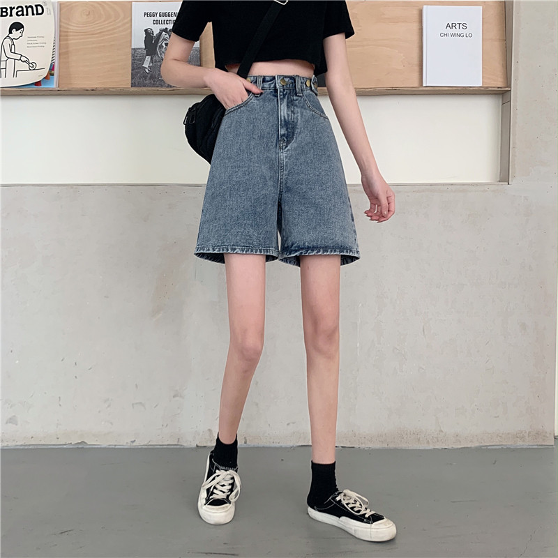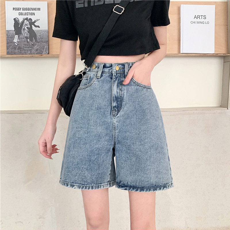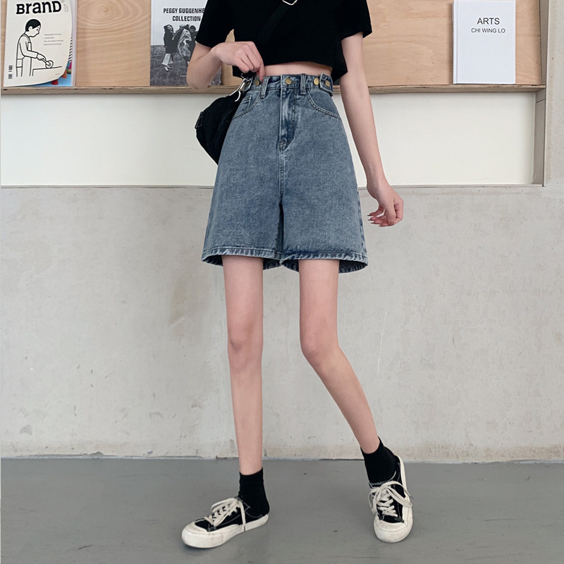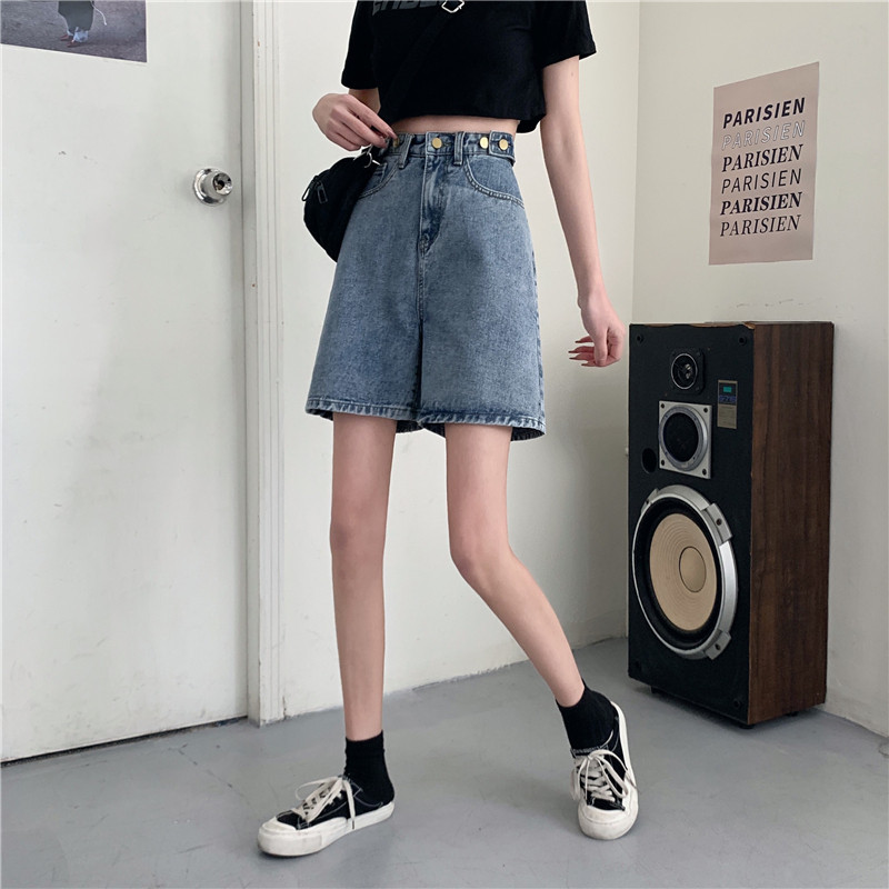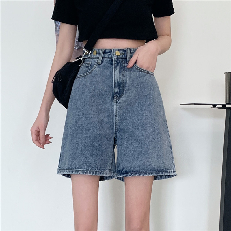 Джинсовая юбка, летние шорты, ретро штаны, высокая талия, оверсайз, большой размер, свободный прямой крой, стройный силуэт