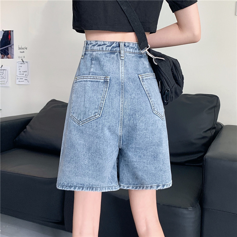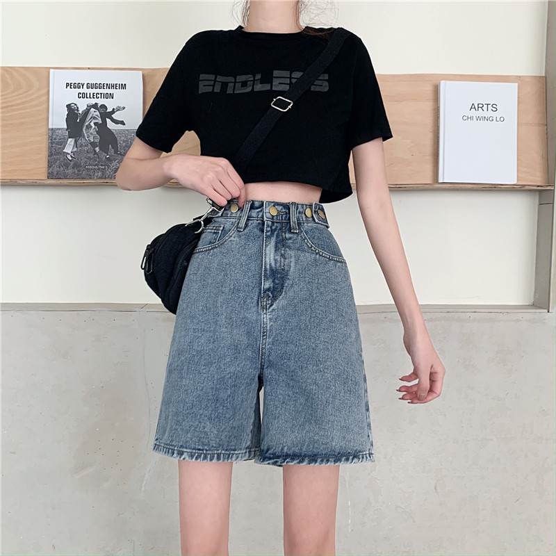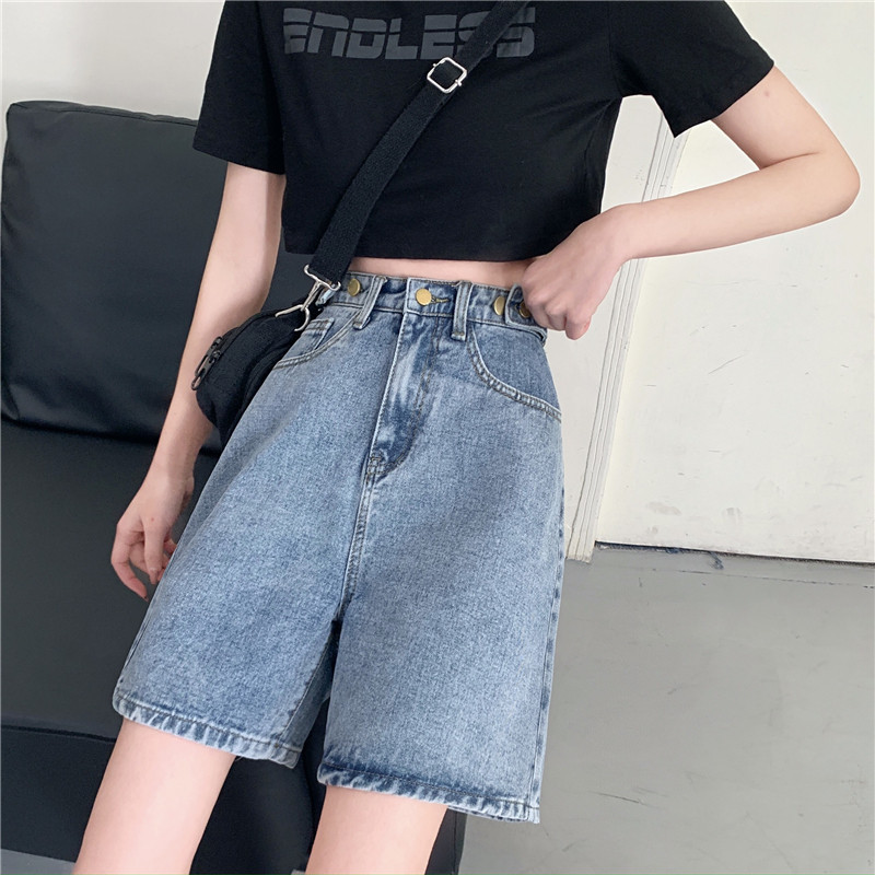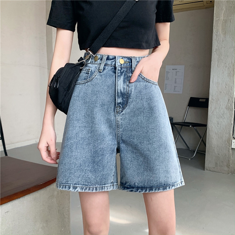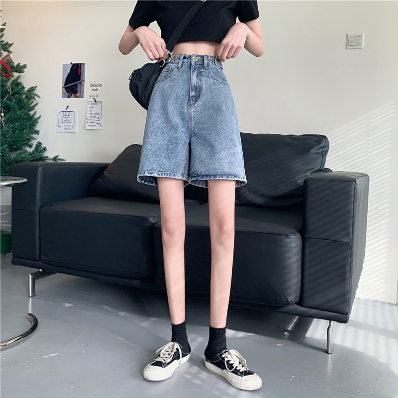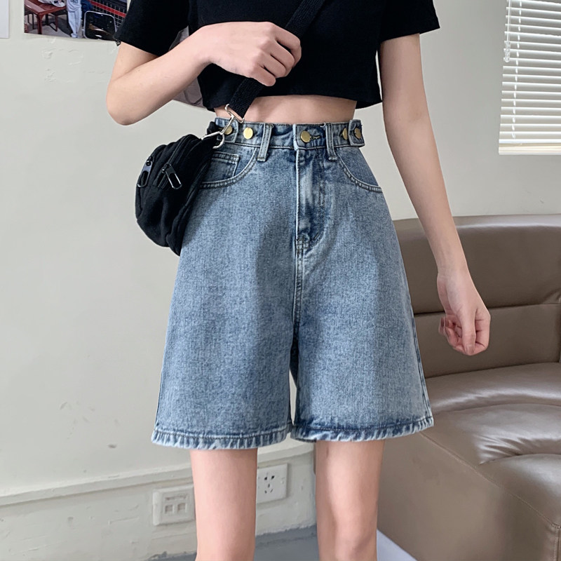Джинсовая юбка, летние шорты, ретро штаны, высокая талия, оверсайз, большой размер, свободный прямой крой, стройный силуэт