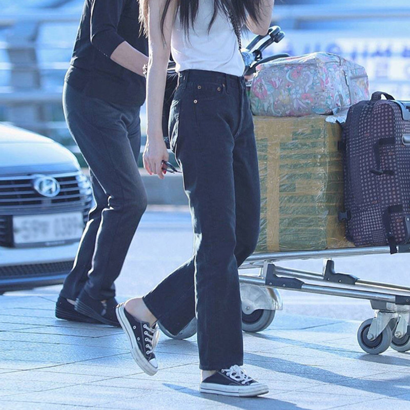 Осенние черные джинсы, весенние приталенные штаны, высокая талия, свободный прямой крой