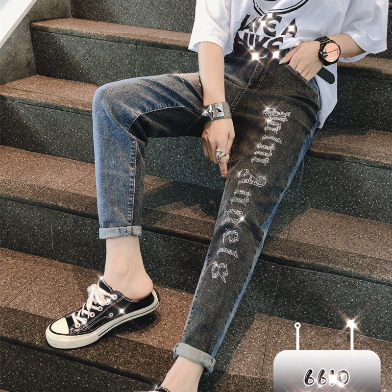 Весенние эластичные джинсы, джинсовые штаны для школьников, высокая талия, в корейском стиле