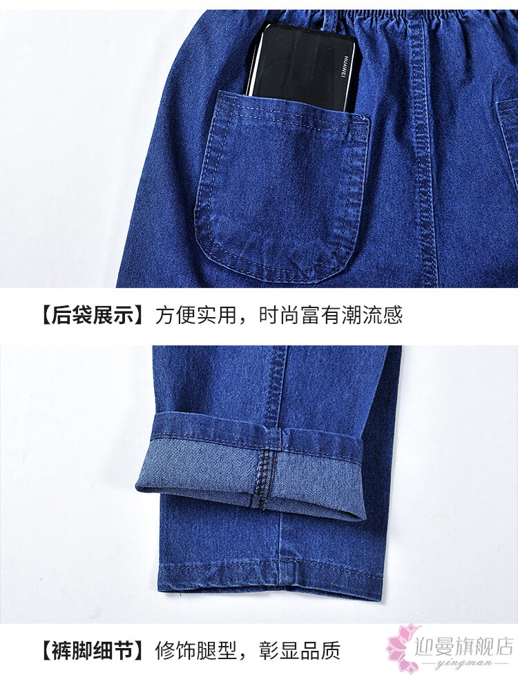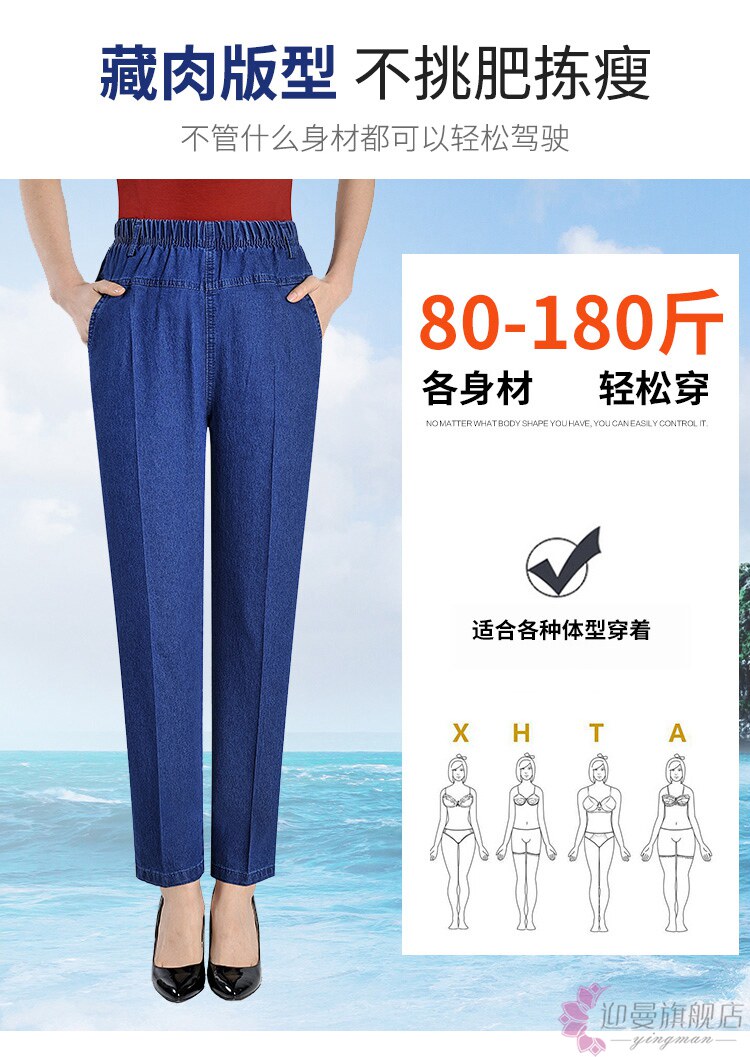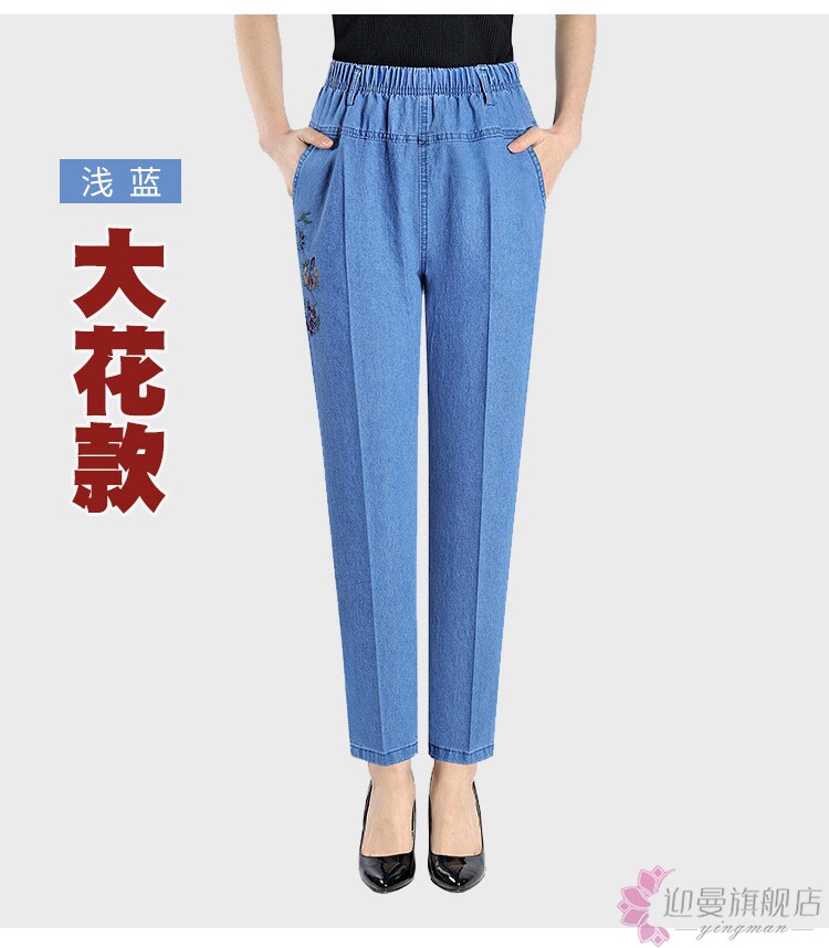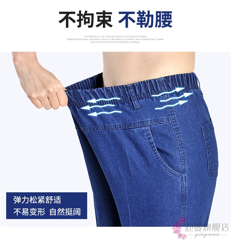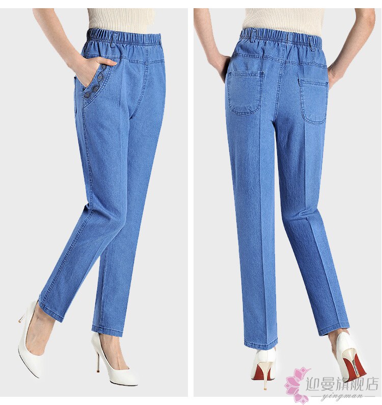 Весенние джинсы, эластичные штаны, для среднего возраста, большой размер, высокая талия