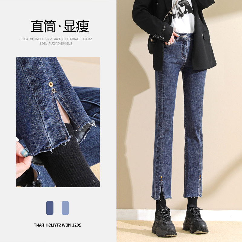 Джинсовые весенние джинсы, приталенные штаны, 2021 года, свободный прямой крой, высокая талия, облегающий крой
