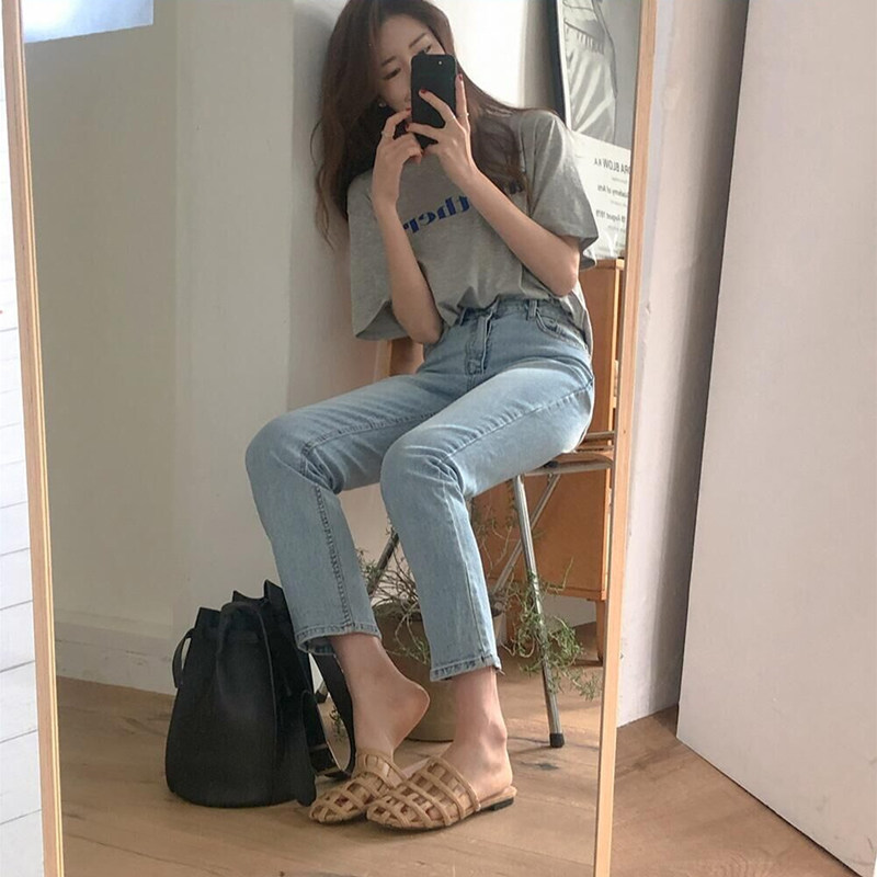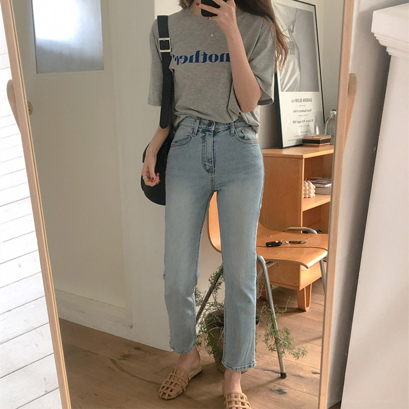 Джинсы, синие штаны, 2023, высокая талия, свободный прямой крой, подходит для подростков, по фигуре