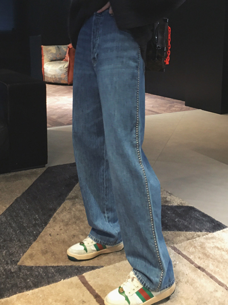 Джинсы, брендовые штаны для школьников и студентов, высокая талия, коллекция 2021, большой размер, свободный прямой крой