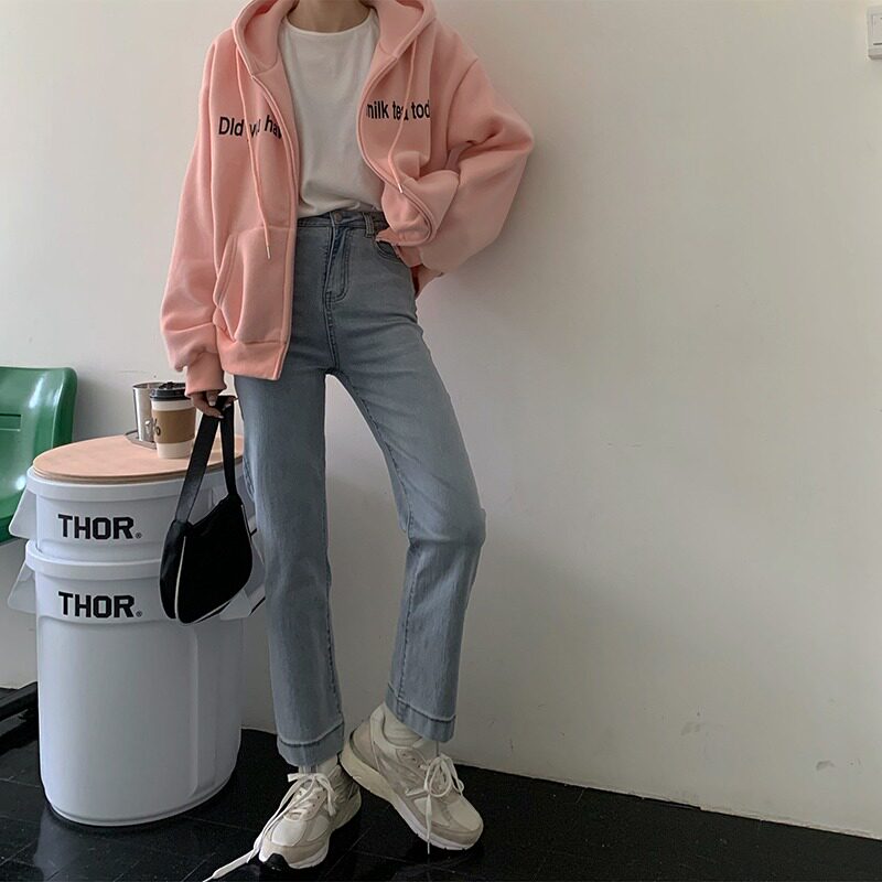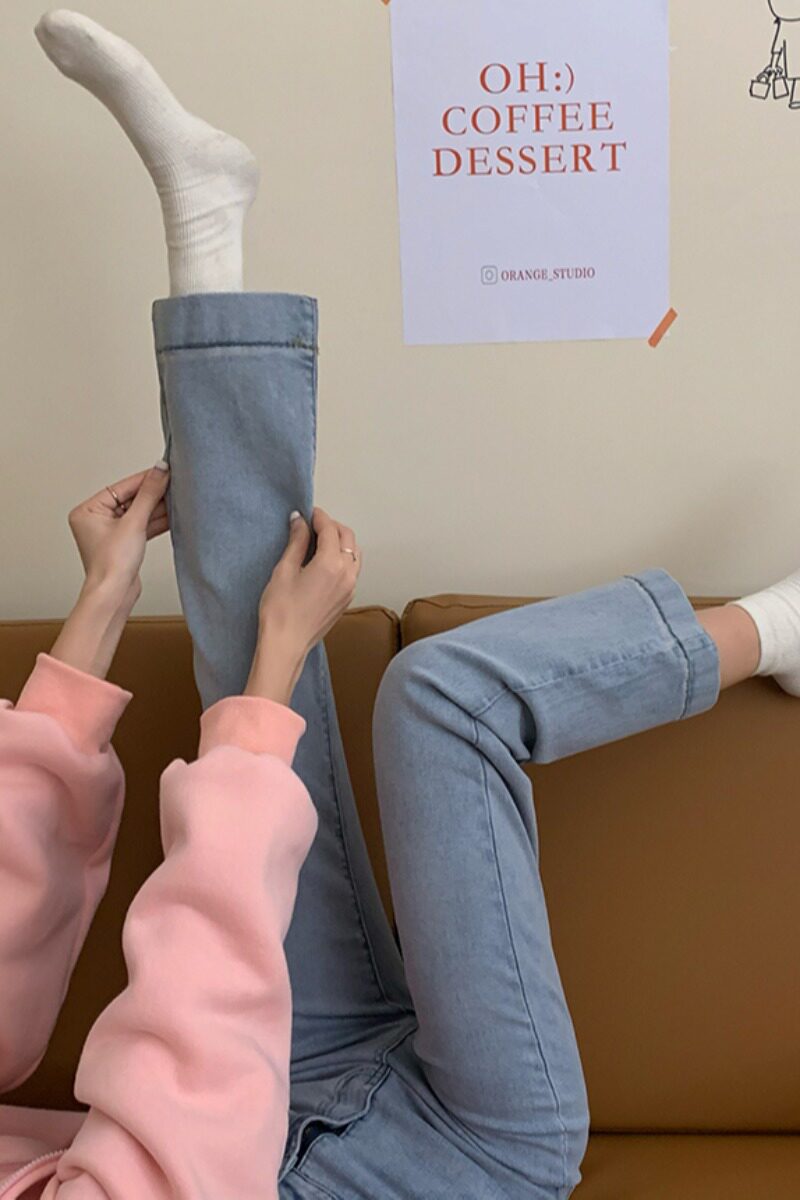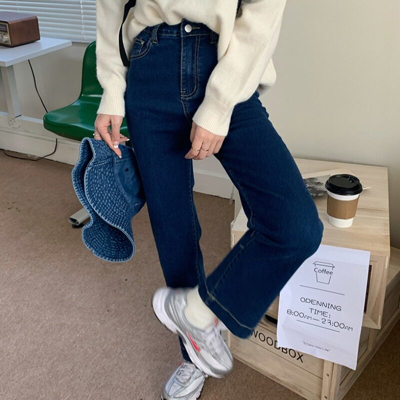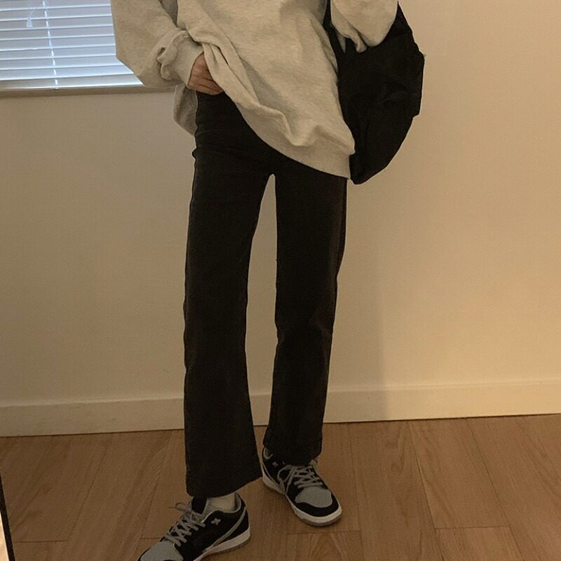Весенние джинсы, приталенные штаны, в корейском стиле, высокая талия, свободный прямой крой, 2021 года