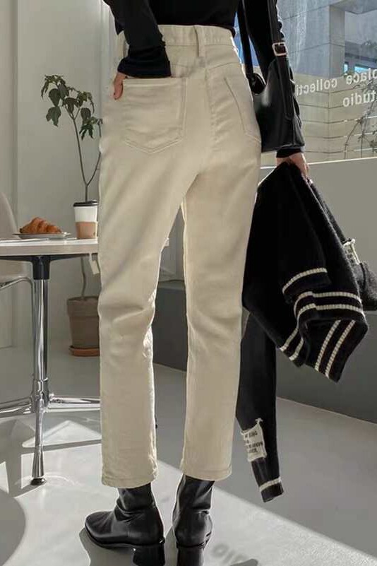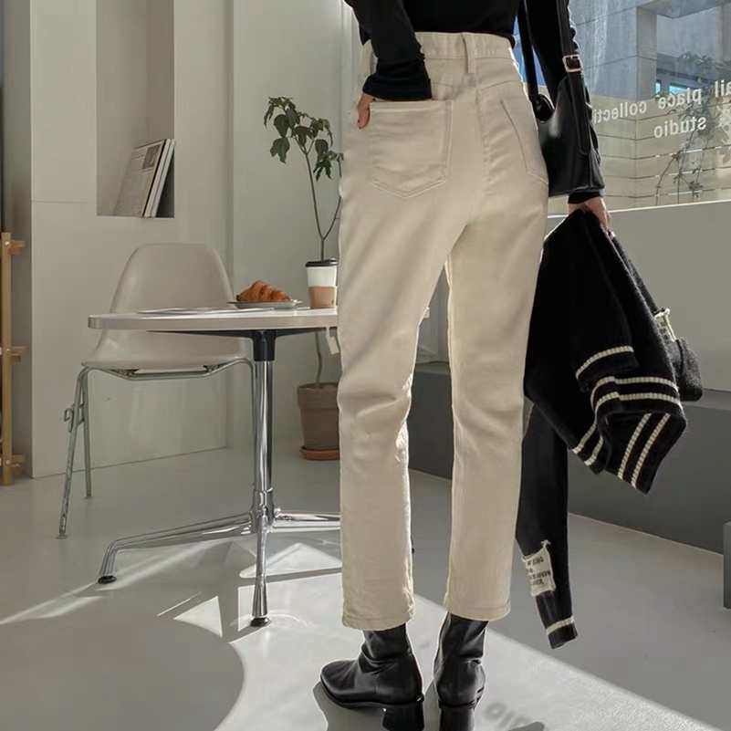 Бежевые прямые свободные джинсы, демисезонные штаны, высокая талия, свободный крой, по фигуре