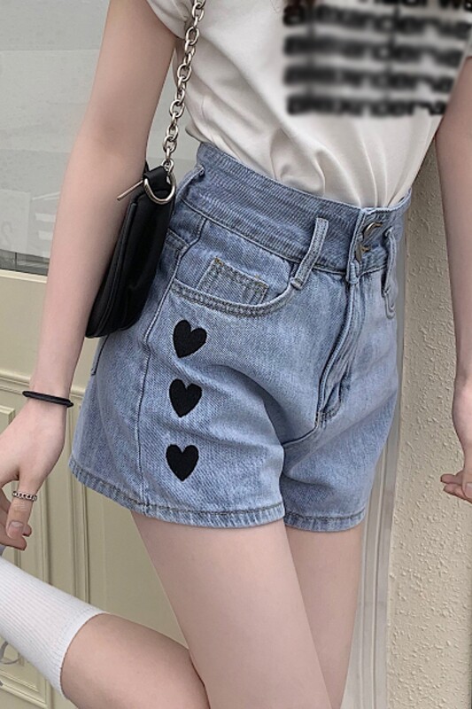 Летняя приталенная джинсовая юбка, шорты, штаны, в корейском стиле, коллекция 2021, высокая талия, с вышивкой, свободный крой