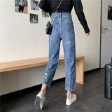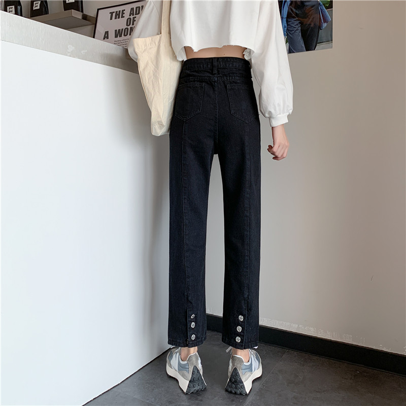 Джинсы, осенние штаны, большой размер, свободный прямой крой, коллекция 2021, высокая талия, по фигуре