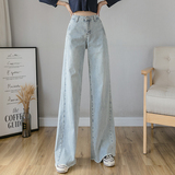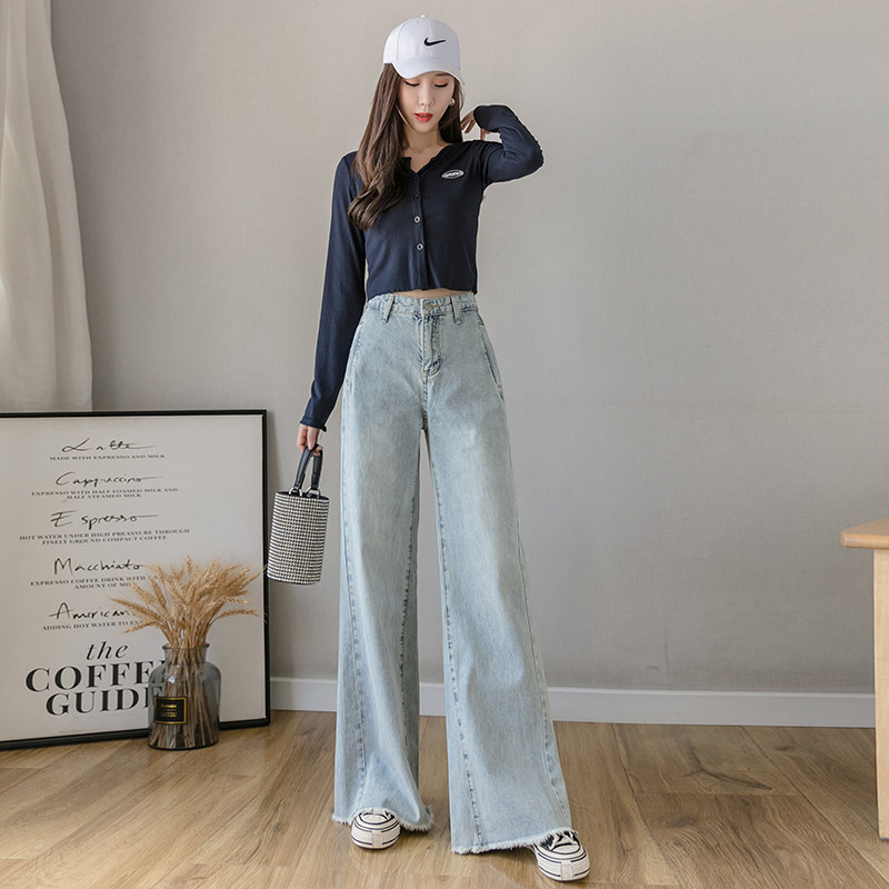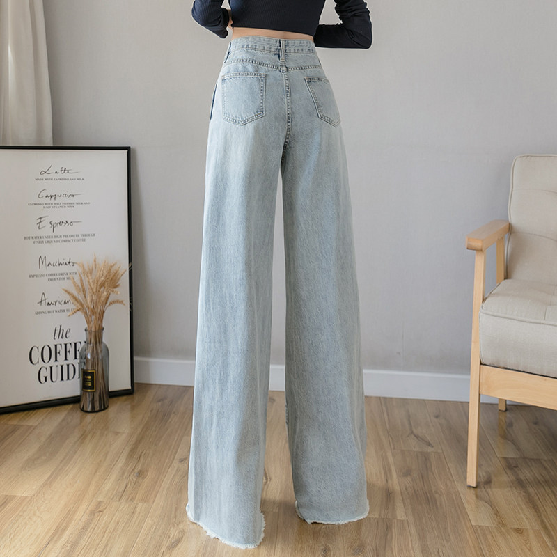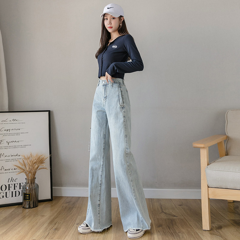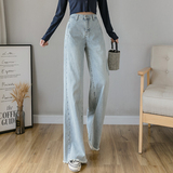 Осенние джинсы, светлые штаны, высокая талия, свободный прямой крой