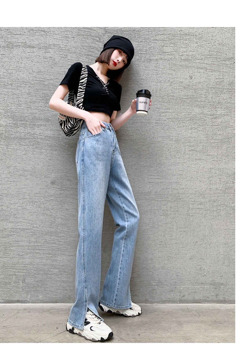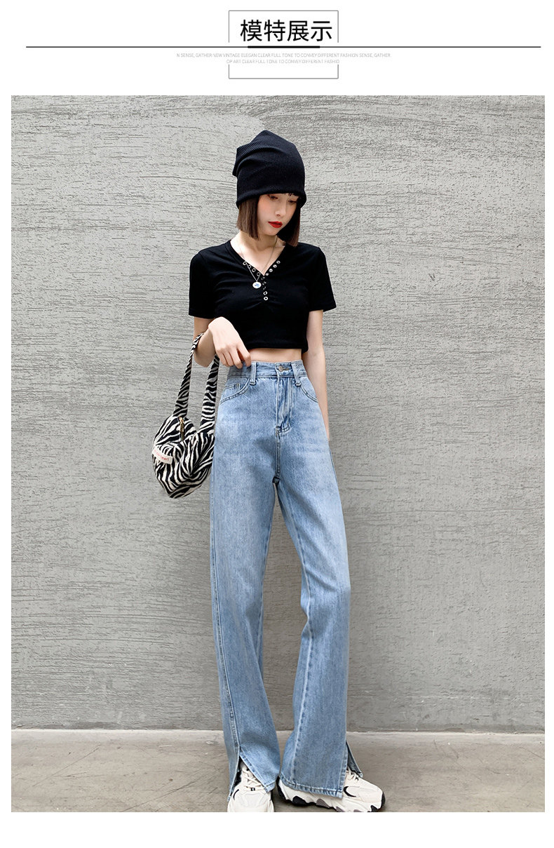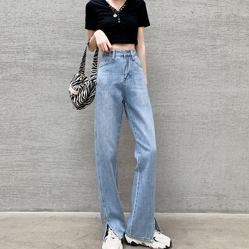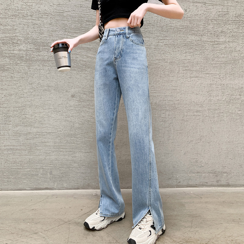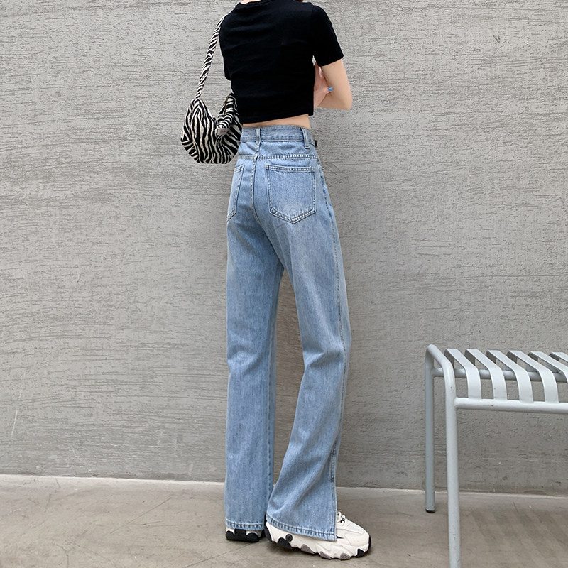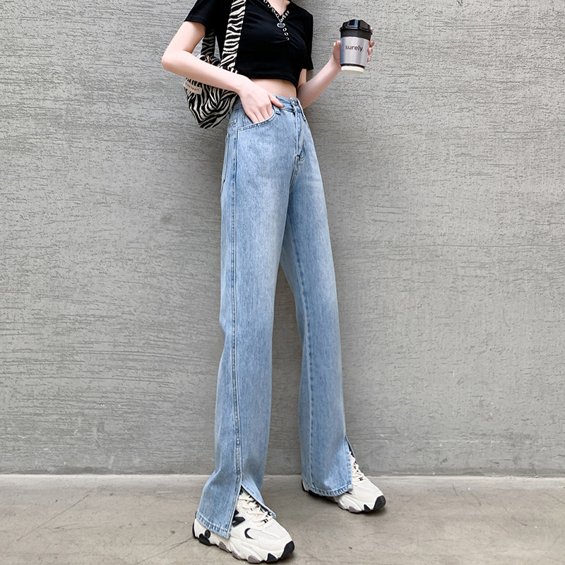 Штаны, джинсовые летние джинсы, высокая талия, коллекция 2023, по фигуре, свободный прямой крой
