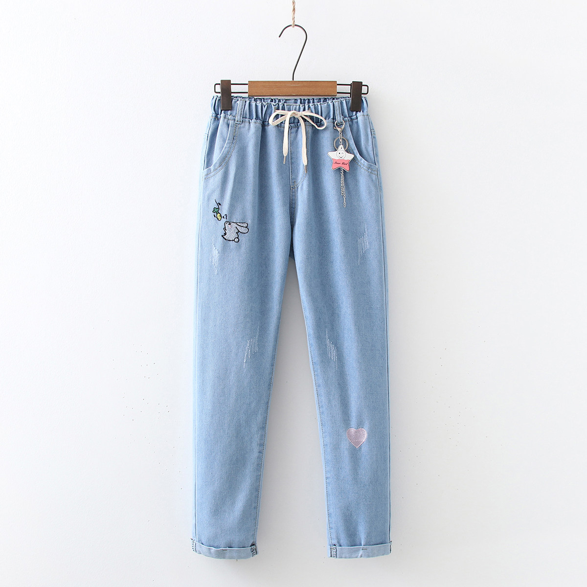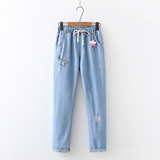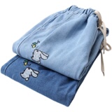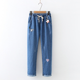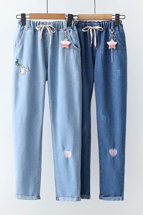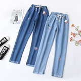 Весенние штаны, джинсовые джинсы для школьников и студентов, коллекция 2023, для средней школы, эластичная талия, оверсайз
