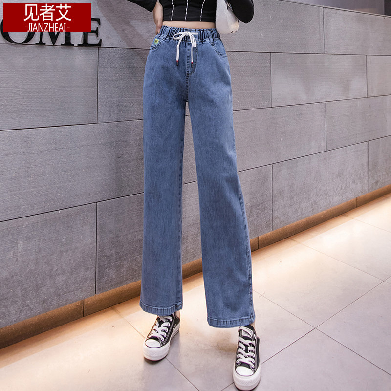 Весенние джинсы, летние штаны, эластичная талия, высокая талия, коллекция 2023, оверсайз, свободный прямой крой, стройный силуэт