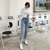 Осенние джинсы, штаны, высокая талия, свободный прямой крой