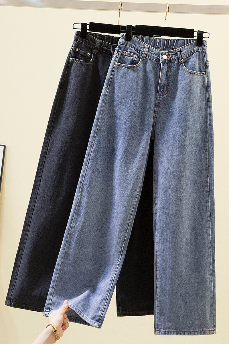 Брендовые джинсовые джинсы, большой размер, осенние, подходит для полных девушек, высокая талия, свободный прямой крой, стройный силуэт