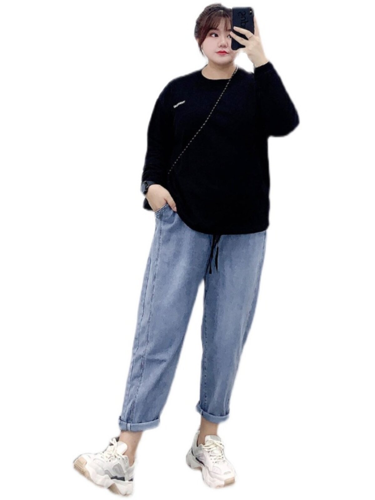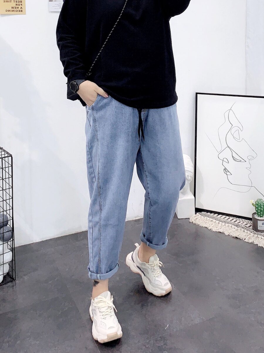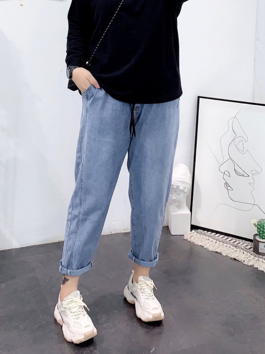 Весенние джинсы, штаны, большой размер, высокая талия, свободный крой